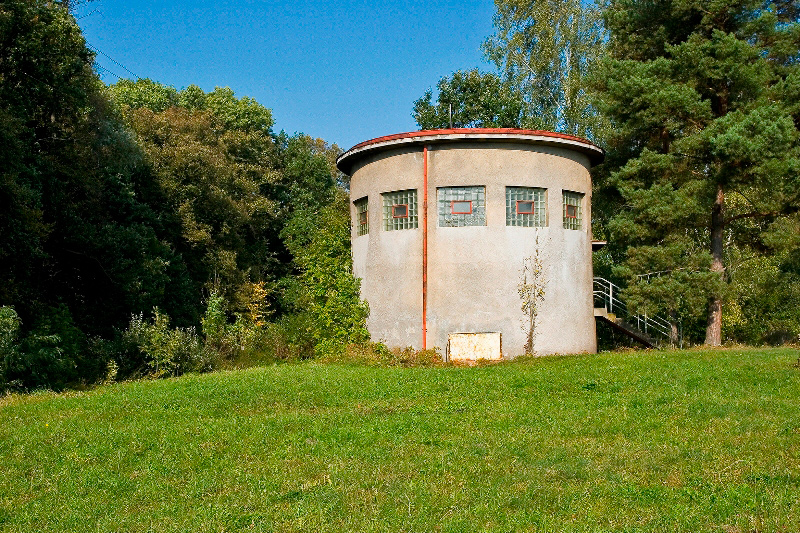 Výtlak na Kaňk byl postaven v letech 1950-51 ještě podle schváleného Chmelíkova projektu a z materiálu připraveného v roce 1946. Zbytek vodovodu byl dostavěn roku 1953. Vzhledem k urychlené realizaci byla vypuštěna úpravna vody a postavena jen čerpací stanice s výkonem 41,2 l/s. (obr.4). Do nového vodojemu na Kaňku byla čerpána voda neupravená, pouze hygienicky zabezpečená. Ta byla vedená na Havírnu, kde posílila nedostatečný zdroj surové vody z Dolu Grejfského pro stávající úpravnu.
