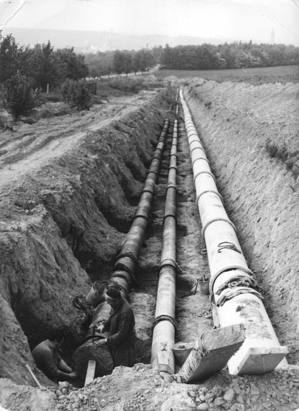Projekt byl několikrát přezkoumán a revidován. Se stavbou jímacího zařízení se započalo v roce 1941 v rámci podrobného hydrogeologického průzkumu. S dokončením celé stavby se počítalo do konce roku 1943. Vzhledem k válečnému vývoji a k nákladům byly realizovány pouze vrty a ostatní bylo odloženo.