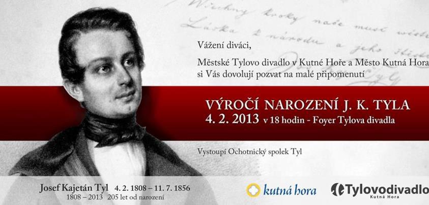 Dovolme si úvod poněkud cimrmanovský: o významu J.K.Tyla pro české divadlo můžeme diskutovat, můžeme o něm případně pochybovat, či jej zcela popřít, ale to je tak asi jediné, co s tím můžeme udělat. Fakt, že se narodil před 205 lety v Kutné Hoře dne 4.února 1808 je nezpochybnitelný.
