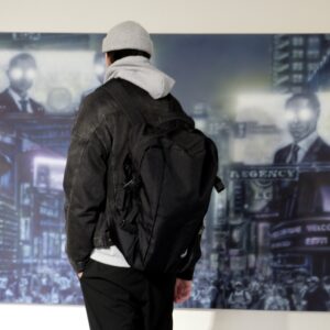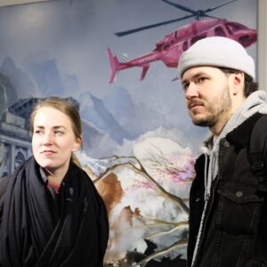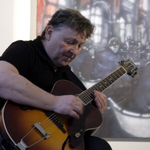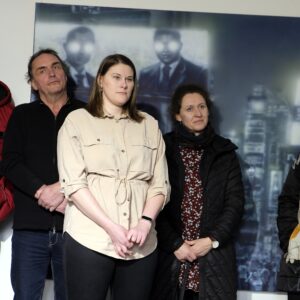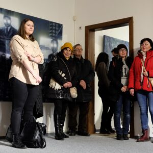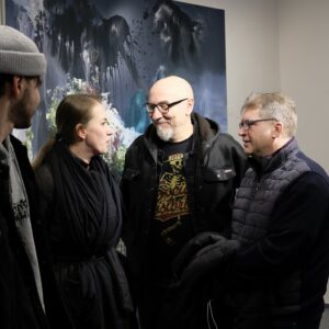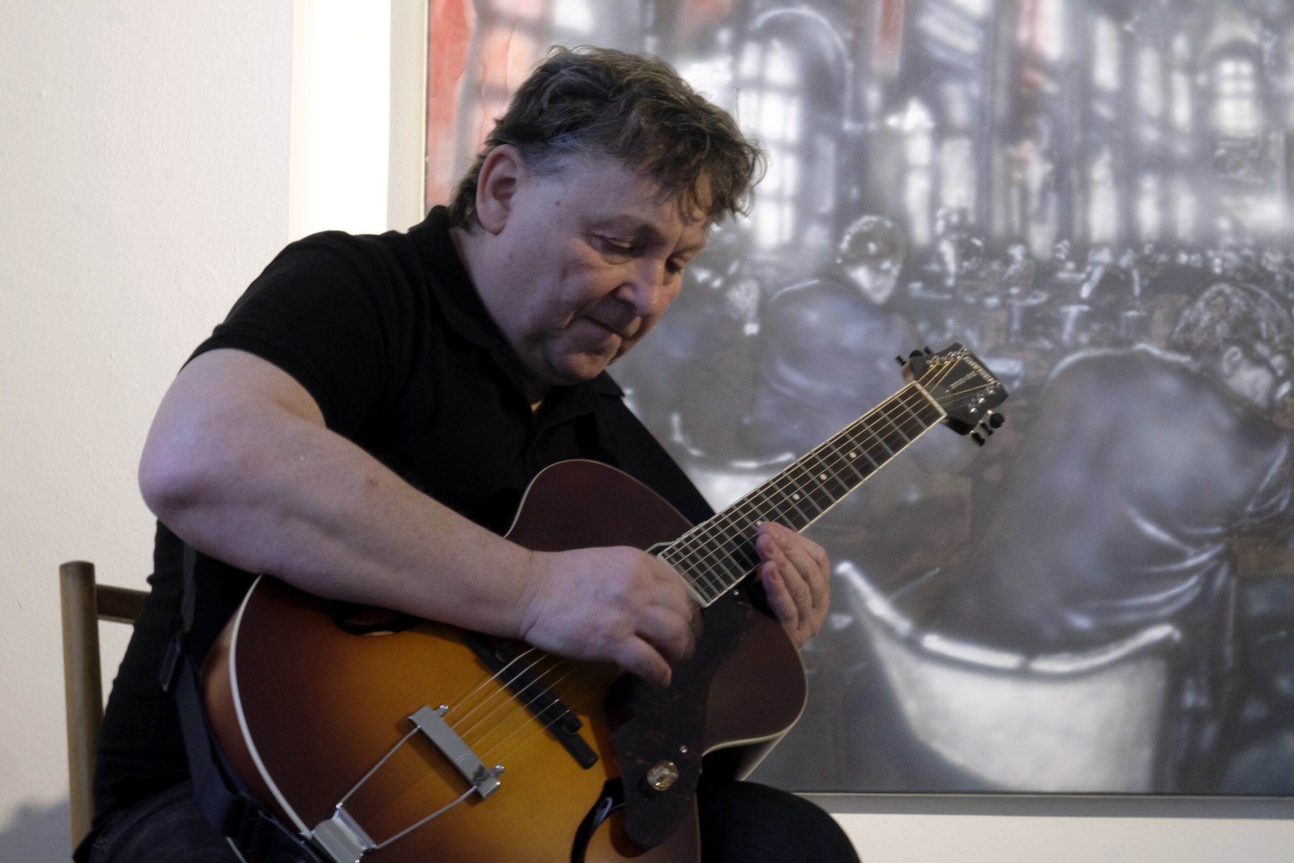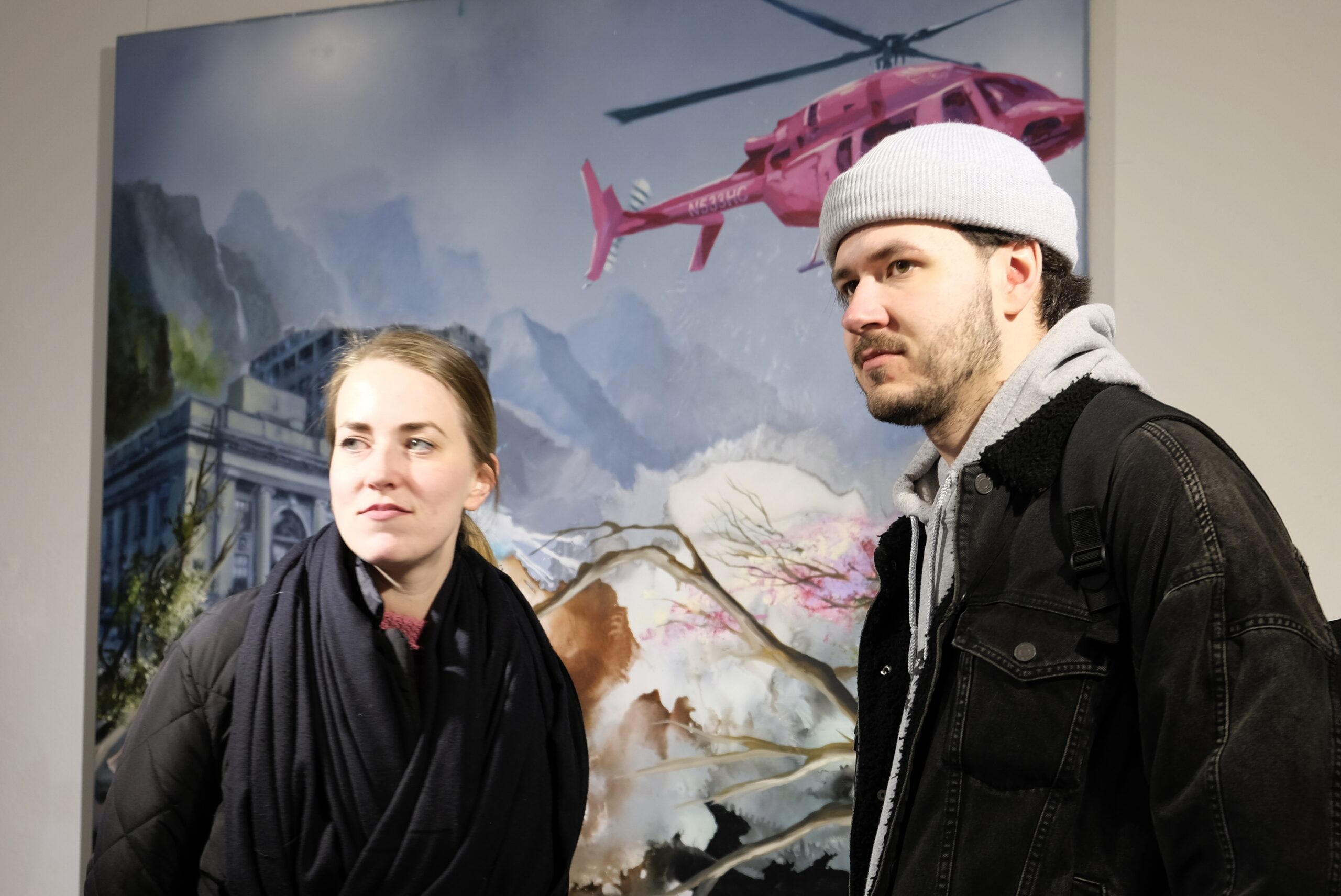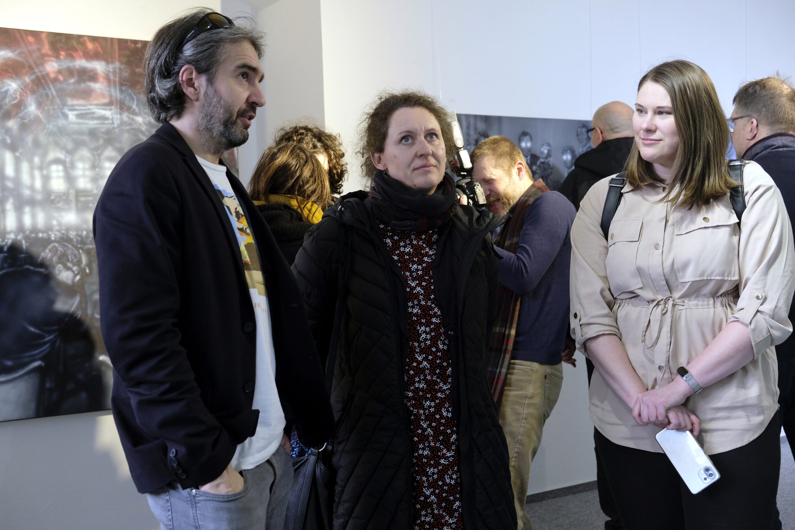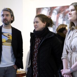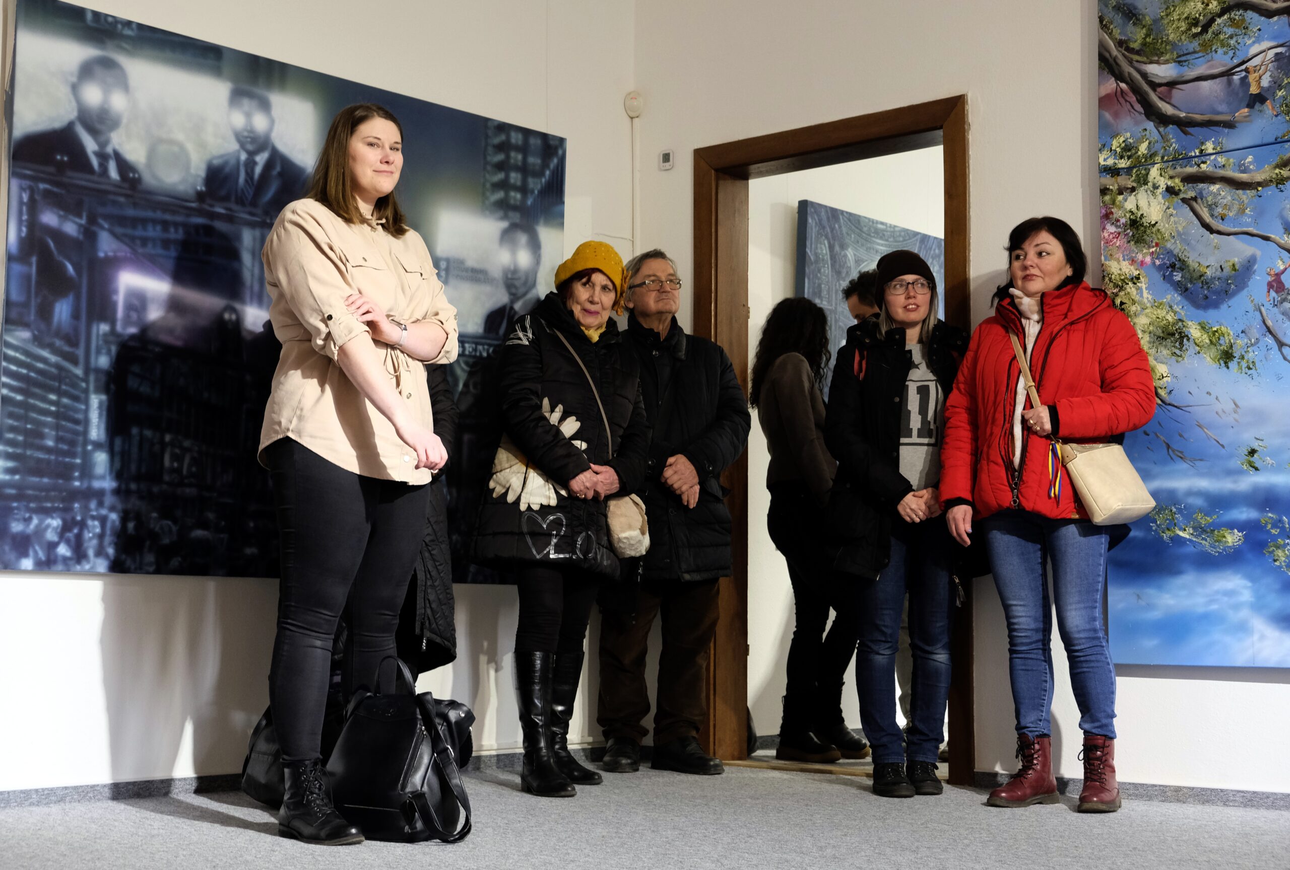 Aleš Rezler, kurátor výstavy, představil autora těmito slovy: „Michal ČERNUŠÁK (*1982) patří k výrazným představitelům slovenské velkoformátové figurální malby realizované pomocí kombinace akrylu a paintbrushe.Je absolventem Vysoké školy výtvarných umění v Bratislavě, atelieru malby Ivana Csudaie. Je zařazován do reprezentativních přehlídek současné malby nejen na Slovensku ale i v zahraničí. Zpracovává systematicky téma moderní společnosti, globalizace a konzumu. Po rannějším období monochromatických pláten přešel po roce 2010 k baroknímu víření barevných kompozic obsahující fragmenty zástupných výseků nejrůznějších lidských skupin, jejich činností. Podává vířící obraz hroutícího se světa absolutního pluralismu zahrnující úryvky z davových scén válečné aktivity, byznysu, reklamy, marketingu nebo masové relaxace moderní společnosti. Smysl pro barvu a formu v kombinaci s monumentálním přednesem zaručuje Černušákovi maximální přesvědčivost výrazu. Je zastoupen v řadě významných veřejných sbírek na Slovensku a v zahraničí. Sammlung Essl, Wien-Klosteneuburg (A); European Central Bank, Frankfurt am Main (D); Marek Collection, Brno (CZ); Wannieck gallery, Brno (CZ); DvorakSec Gallery, Praha (CZ); Galéria mesta Bratislavy – GMB, Bratislava (S).“ Hudebního zpestření vernisáže se ujal kytarista Jiří Červín.