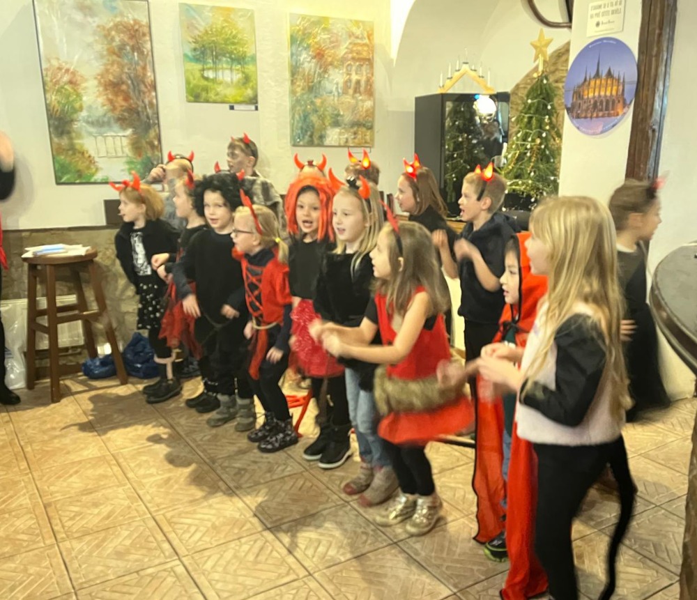 Ve čtvrtek 4. 12. děti z 1. B ZŠ T. G. Masaryka potěšily seniory ze Svazu postižených civilizačními chorobami. V převlecích čertíků předvedly své pilně natrénované vystoupení, které bylo plné písní, básniček i pohybu.