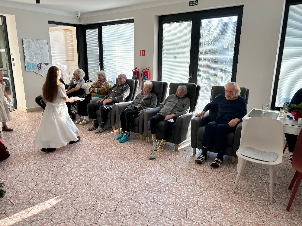 Ve středu 10. 12. děti z 2. B navštívily klienty Rezidence Daczická. Zahrály jim vánoční pohádky protkané klasickými českými koledami. Zároveň jim i zaměstnancům předaly drobné pozornosti, jež vyrobily děti a zaměstnankyně naší školy.