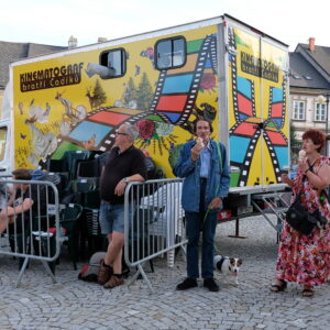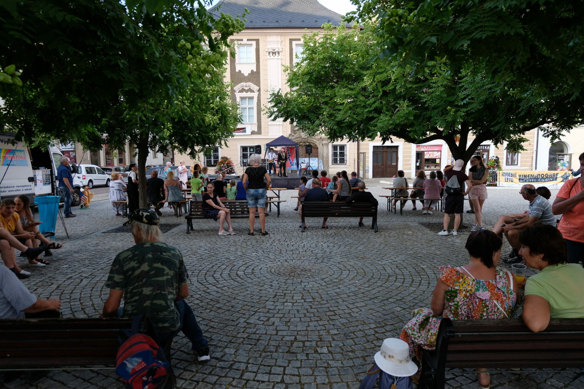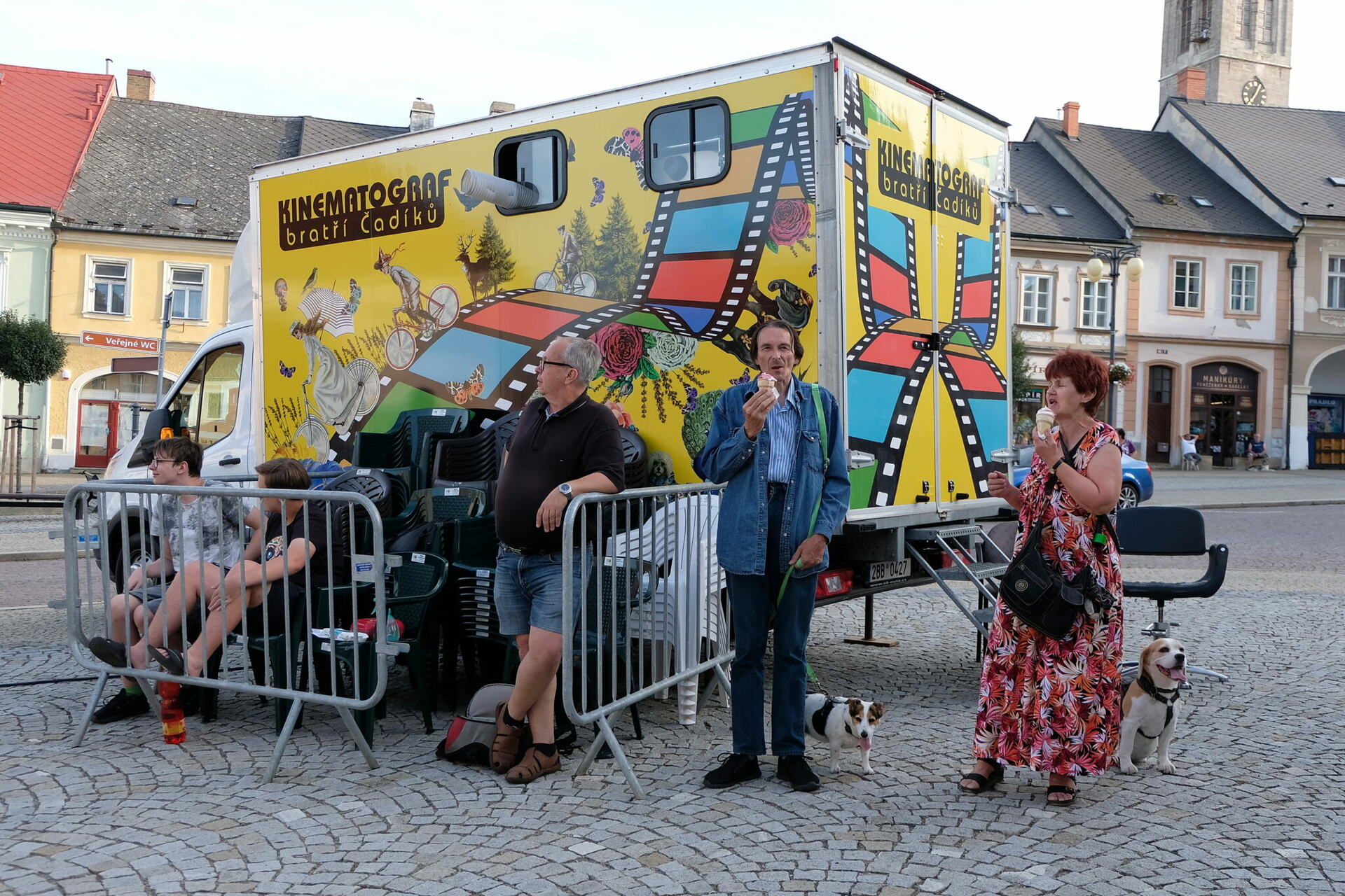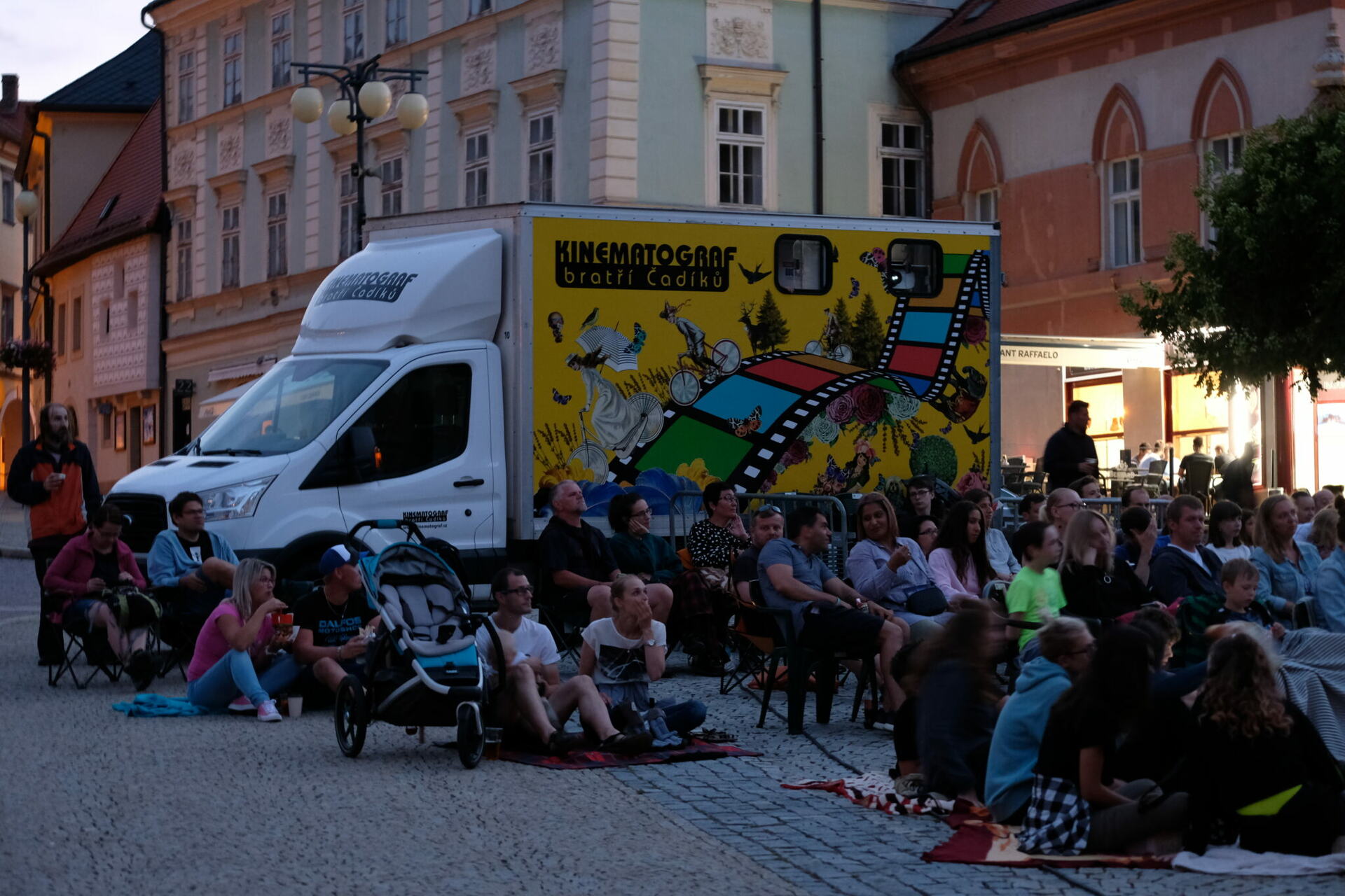 Kinematograf bratří Čadíků nabídl na Palackého náměstí od 26. do 29. července hudební i filmové produkce, pobavil i pomáhal. Dobrovolným vstupným přispěli diváci bezmála 15 tisíc korun na Konto Bariéry.
