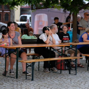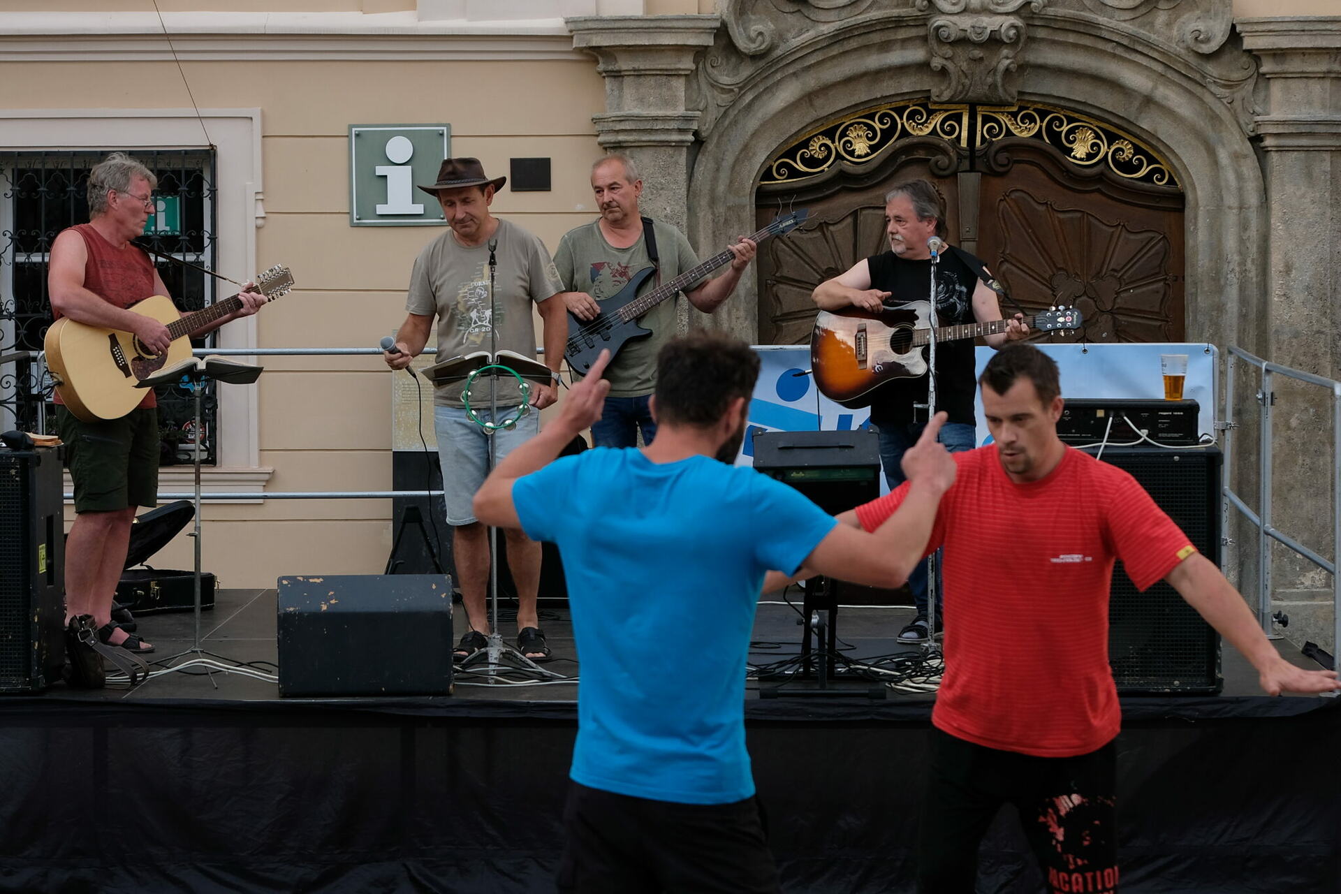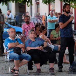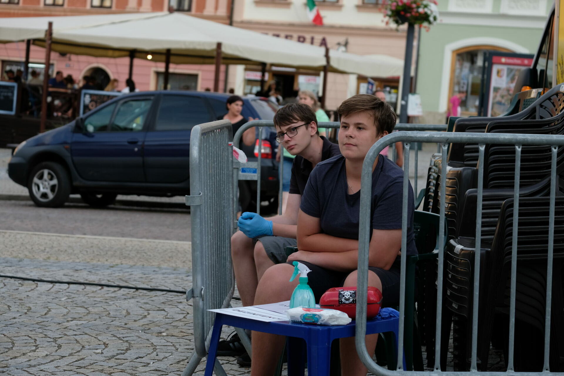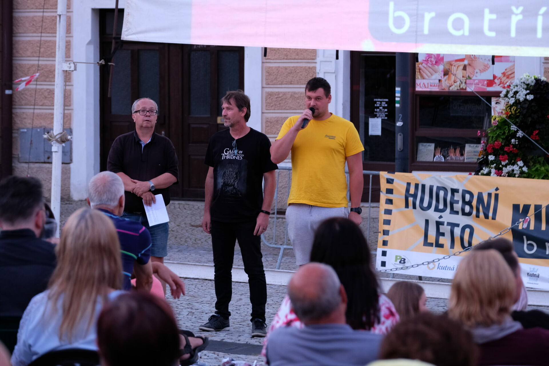 Kinematograf bratří Čadíků nabídl na Palackého náměstí od 26. do 29. července hudební i filmové produkce, pobavil i pomáhal. Dobrovolným vstupným přispěli diváci bezmála 15 tisíc korun na Konto Bariéry.