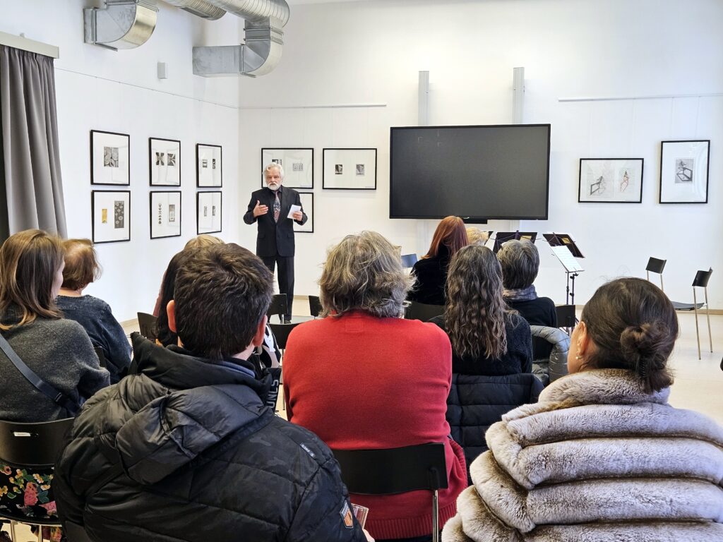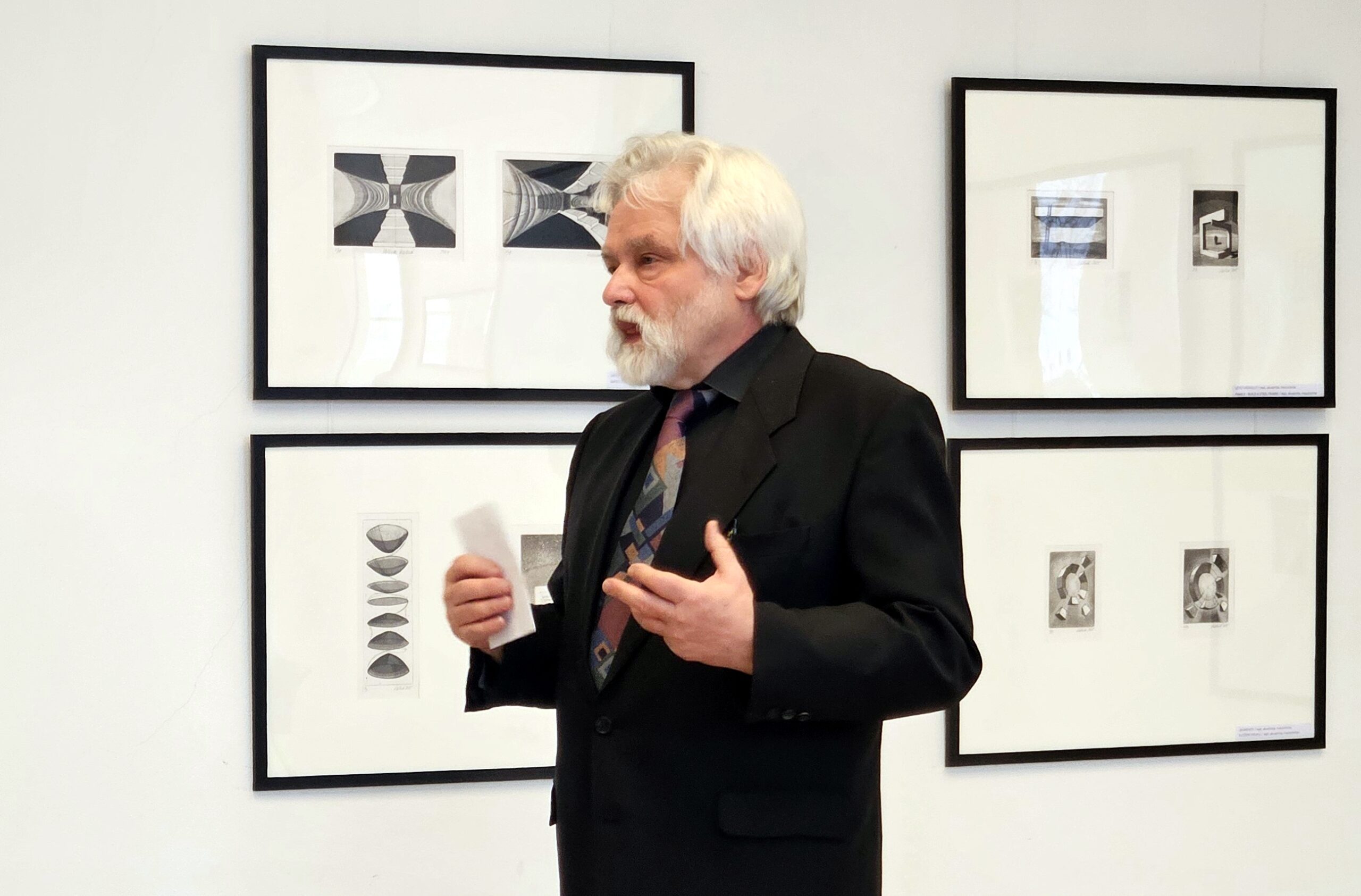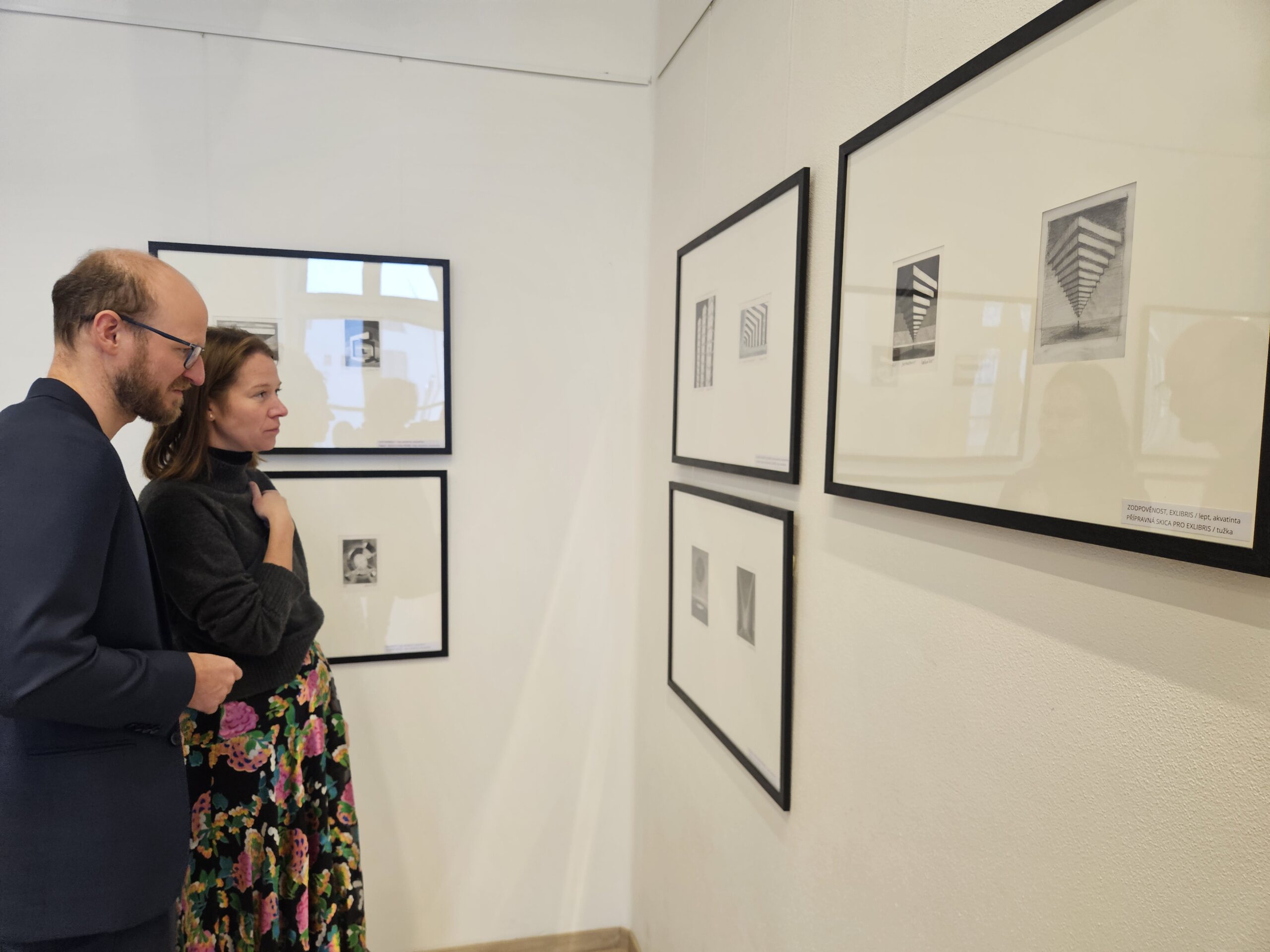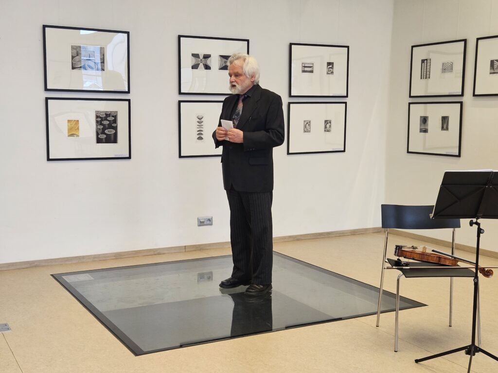Výstavu slovem zahájil a autorčinu osobnost i dílo představil grafik a pedagog ZUŠ Josef Dudek, který se dlouhodobě věnuje tradiční grafice a exlibris a který stál u autorčiných uměleckých začátku.