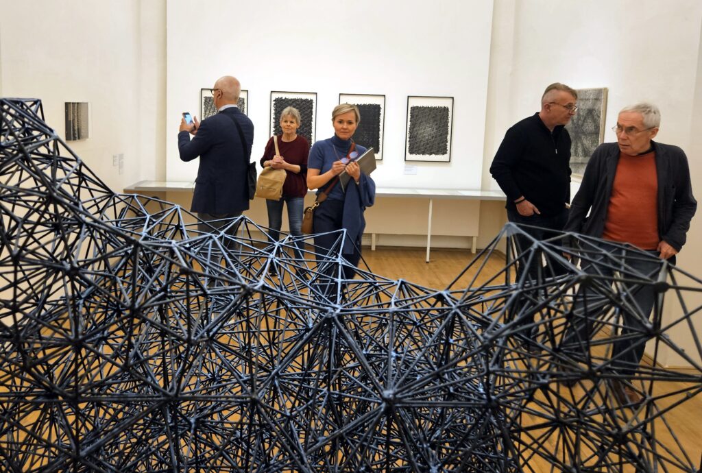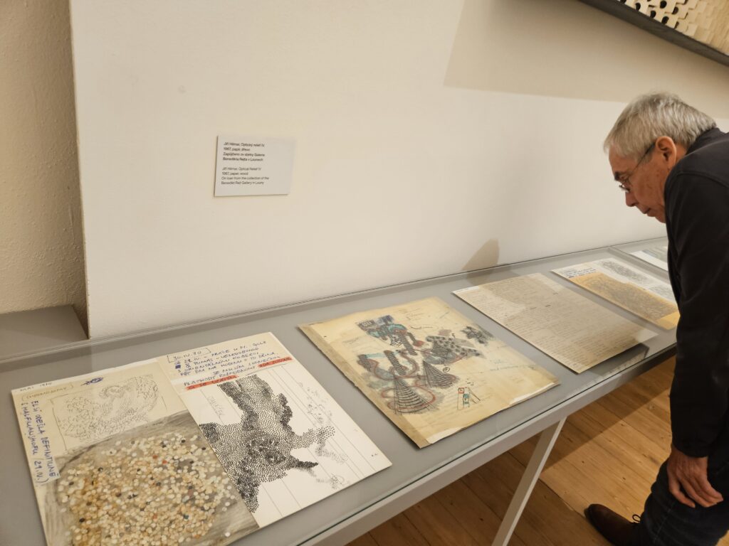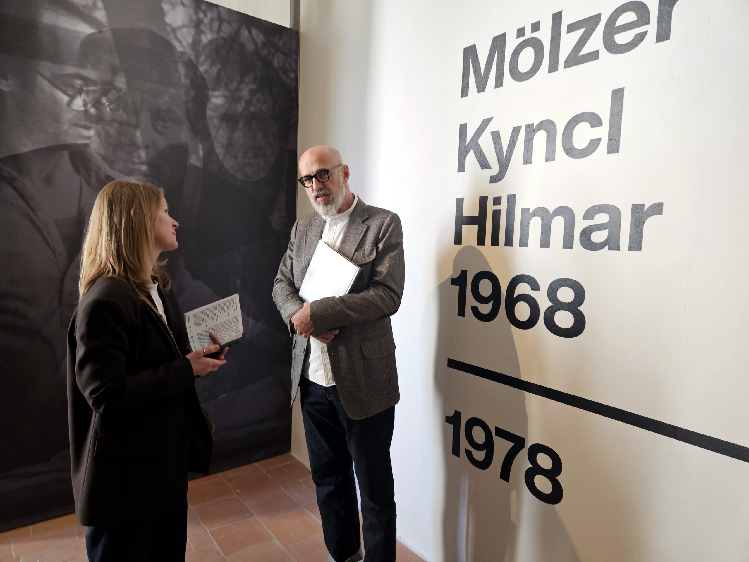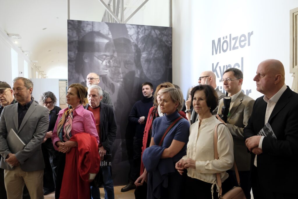 Výstava Mölzer Kyncl Hilmar 1968–1978, která se pro veřejnost otevřela 12. dubna, mapuje tvorbu a působení Milana Mölzera (1937–1976), Františka Kyncla (1934–2011) a Jiřího Hilmara (1937–2026) v prostředí tzv. Západního Německa (SRN), kde po emigraci rozvíjeli svůj výtvarný jazyk v kontaktu s progresivními uměleckými tendencemi. Tři autoři sdíleli zásadní životní etapu, během níž se museli vyrovnat s novými podmínkami v cizí zemi a budovat svou uměleckou kariéru na nových základech. Z původně spíše letmých kontaktů v Československu se v exilu postupně vyvinula pevná síť napříč uměleckou, teoretickou a galerijní sférou. „Právě princip sítě jsme nakonec přijali jako hlavní pracovní metodu při přípravě výstavy i textů,“ uvádí kurátorka Veronika Marešová. Trojice umělců je zasazena do kontextu evropské výtvarné scény, konkrétně do jednoho z jejích hlavních center – německého Düsseldorfu.