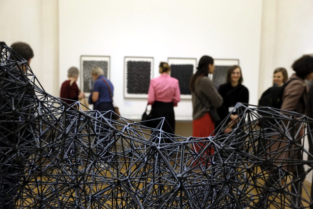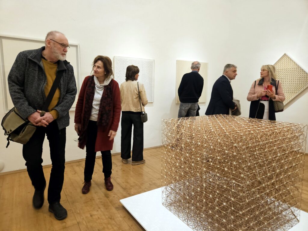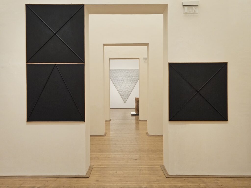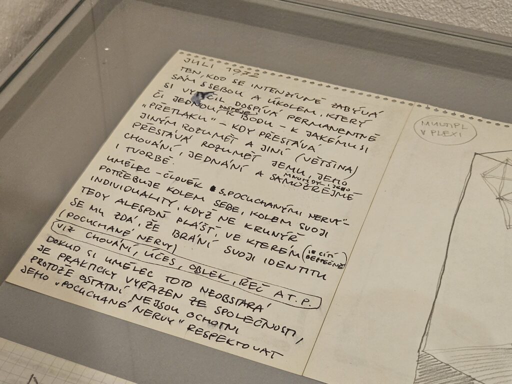 Výstava Mölzer Kyncl Hilmar 1968–1978, která se pro veřejnost otevřela 12. dubna, mapuje tvorbu a působení Milana Mölzera (1937–1976), Františka Kyncla (1934–2011) a Jiřího Hilmara (1937–2026) v prostředí tzv. Západního Německa (SRN), kde po emigraci rozvíjeli svůj výtvarný jazyk v kontaktu s progresivními uměleckými tendencemi. Tři autoři sdíleli zásadní životní etapu, během níž se museli vyrovnat s novými podmínkami v cizí zemi a budovat svou uměleckou kariéru na nových základech. Z původně spíše letmých kontaktů v Československu se v exilu postupně vyvinula pevná síť napříč uměleckou, teoretickou a galerijní sférou. „Právě princip sítě jsme nakonec přijali jako hlavní pracovní metodu při přípravě výstavy i textů,“ uvádí kurátorka Veronika Marešová. Trojice umělců je zasazena do kontextu evropské výtvarné scény, konkrétně do jednoho z jejích hlavních center – německého Düsseldorfu.