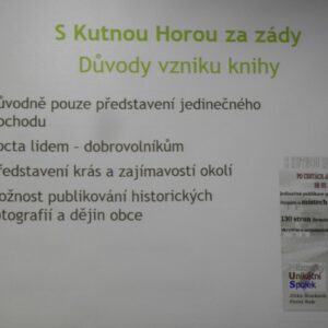 „S Kutnou Horou za zády“ s podtitulem „Po cestách Jarního putování se sv. Jakubem“ se jmenuje kniha, která byla v úterý 19. října slavnostně pokřtěna v Městské knihovně v Kutné Hoře. Poděkování patří sponzorům a Městu Kutná Hora, za jejichž podpory kniha vznikla.