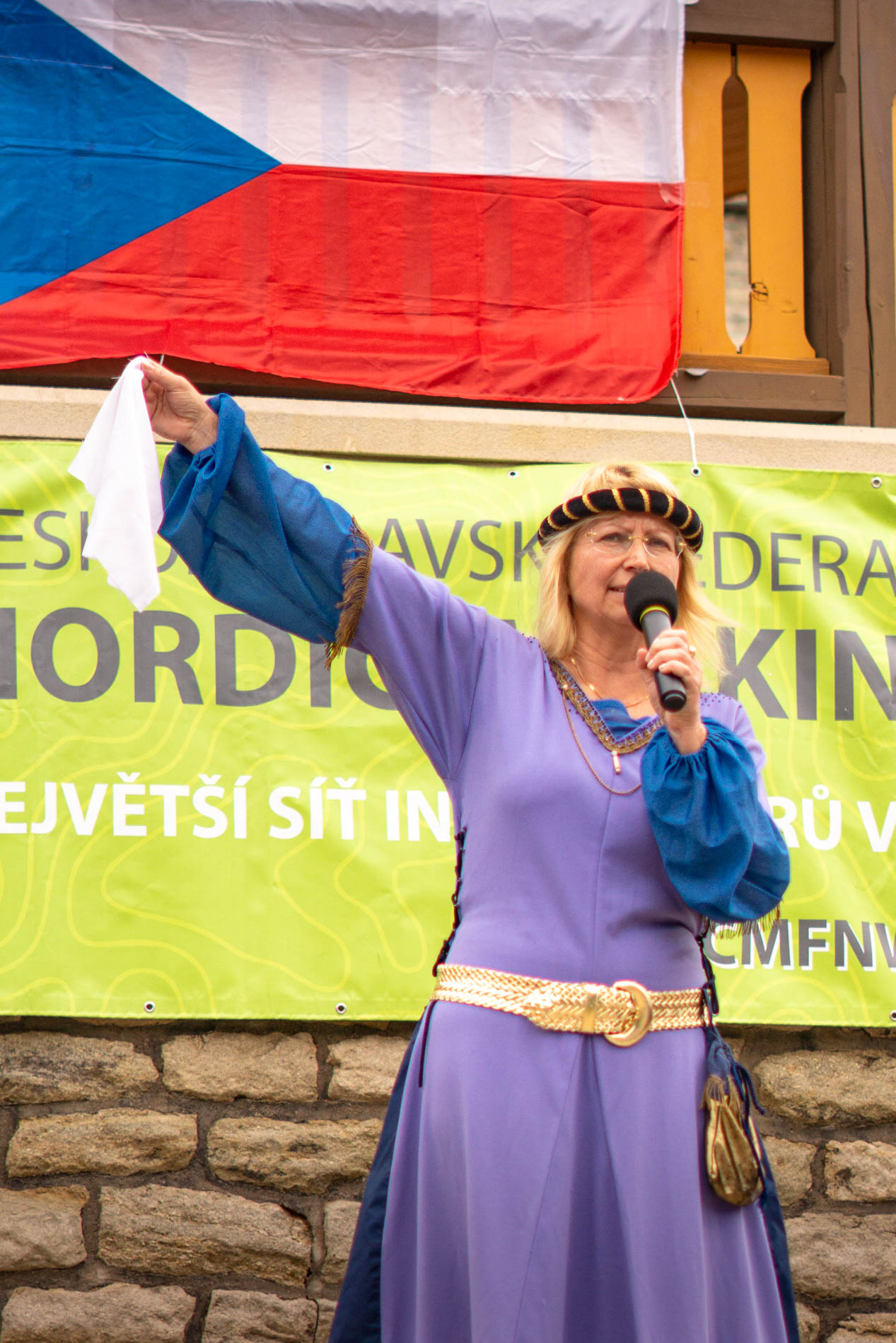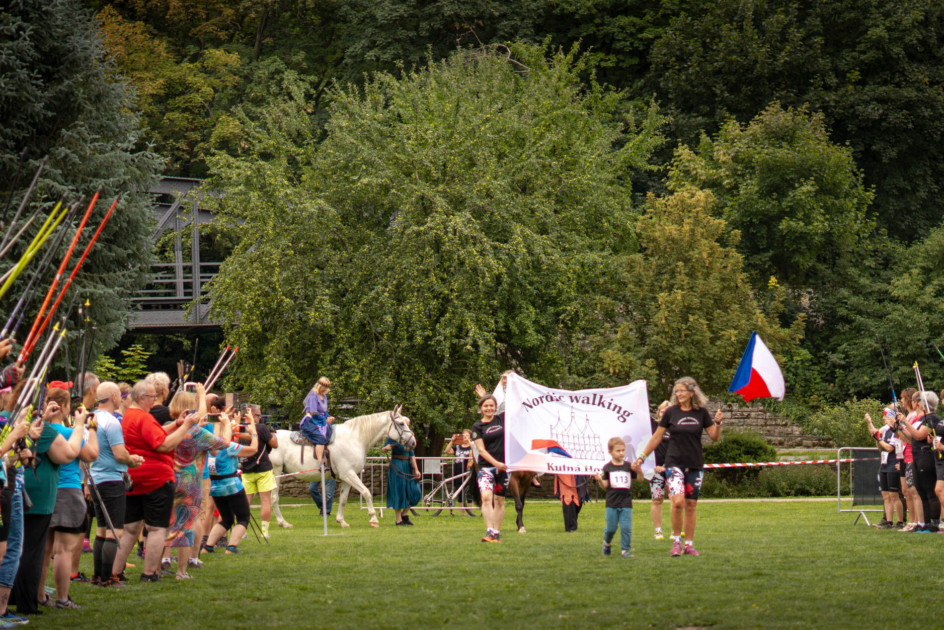 V 10:00 vjely do parku pod Vlašským dvorem na koních moderátorky Českomoravského poháru Simona Jirsová a Renata Berková a vyvolaly v závodnících a přihlížejících údiv a uznání. Po slavnostním příjezdu dvou dam předvedl své twirlingové vystoupení Vojtěch Vavřina. Moderátoři následně pozvali k mikrofonu nejprve místostarostku Kateřinu Špalkovou, která hovořila o důležitosti sportovních akcí, jako je právě Českomoravský pohár Nordic walking. Poté k sobě ředitelka závodu Renata Berková pozvala osobnost kutnohorské atletiky Karla Ptáčka a pak i svého otce, který ji přijel podpořit. Promluvila i předsedkyně Českomoravské federace Nordic Walking Jana Stejskalová. Po proslovech ředitelka symbolicky zahájila Českomoravský pohár Nordic walking a všichni walkeři se sešli ke společné rozcvičce.