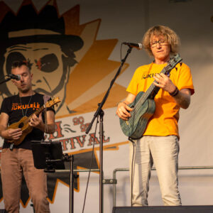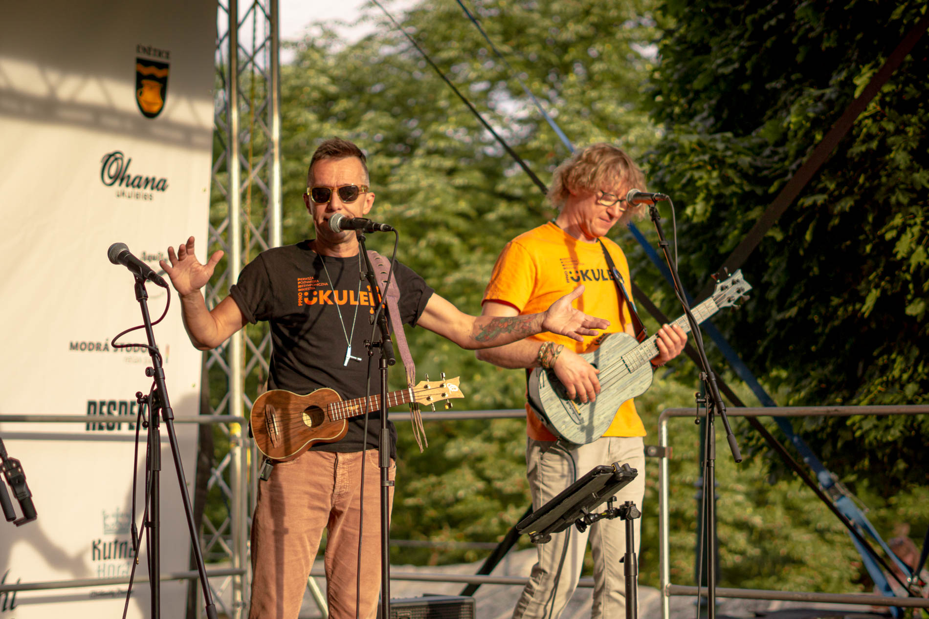 Za chrámem sv. Barbory se sešli v pátek 25. července odpoledne známí i neznámí hráči na ukulele z Česka a celé Evropy, Havaje i Japonska, aby si společně s publikem užili první den 13. ročníku Českého ukulele festivalu. Festival nabídl i letos příjemný hudební zážitek, velkou dávku humoru a nezapomenutelnou atmosféru. Posluchači se nechali unést multižánrovými vystoupeními, které zprostředkovali umělci z uskupení Dublin Ukulele Collective, Ecce Uku, Calico, PPNOU a přátelé a Gabriela la Foley s Johnem Otwayem. Na festivalu nechyběl ani open mic, kde zahráli i sami návštěvníci a příznivci ukulele.