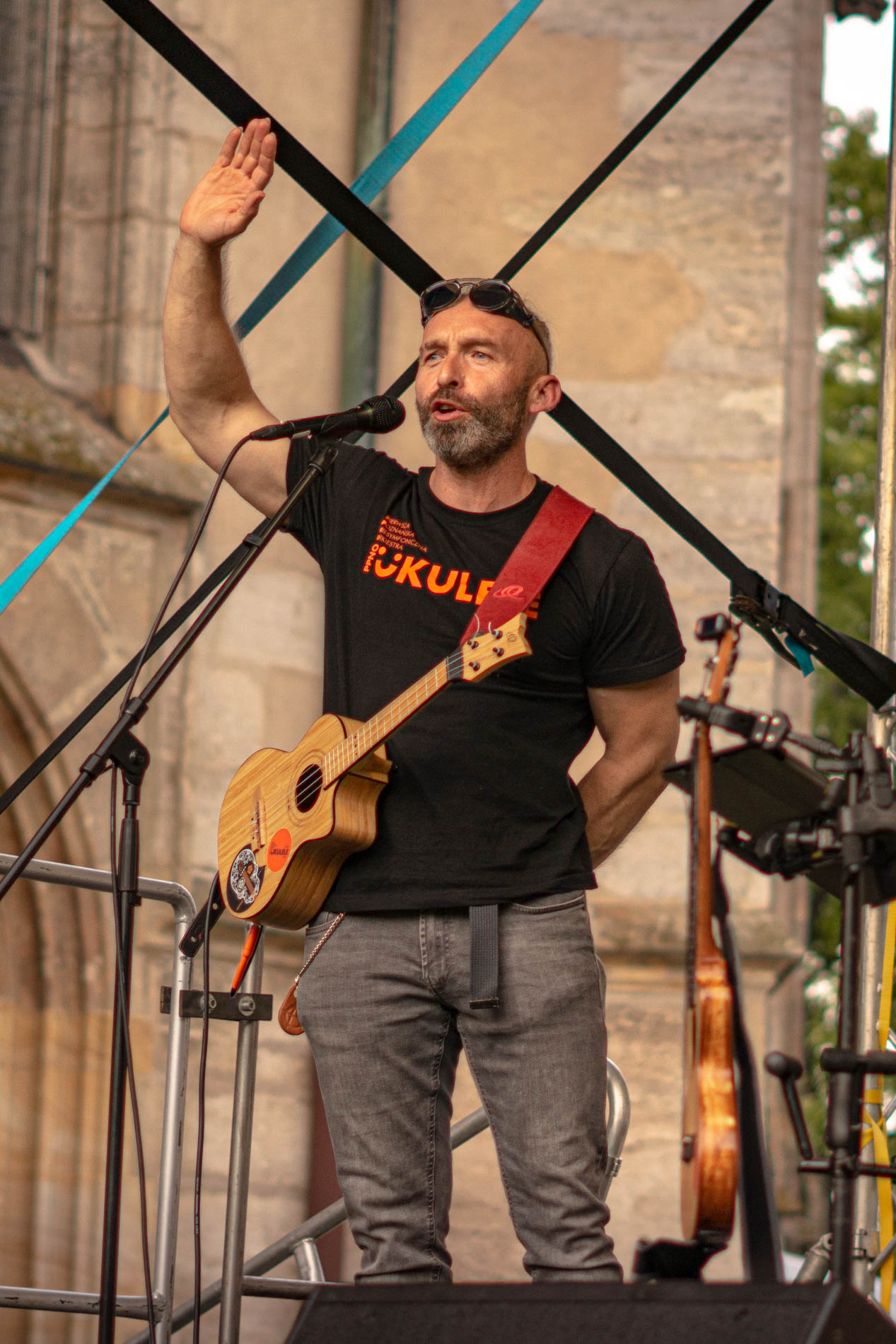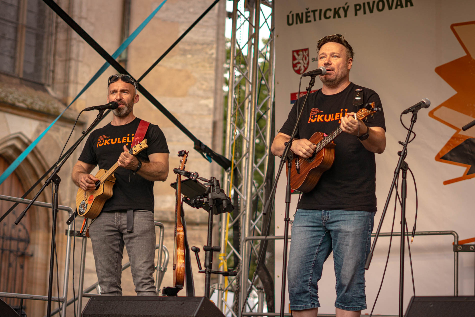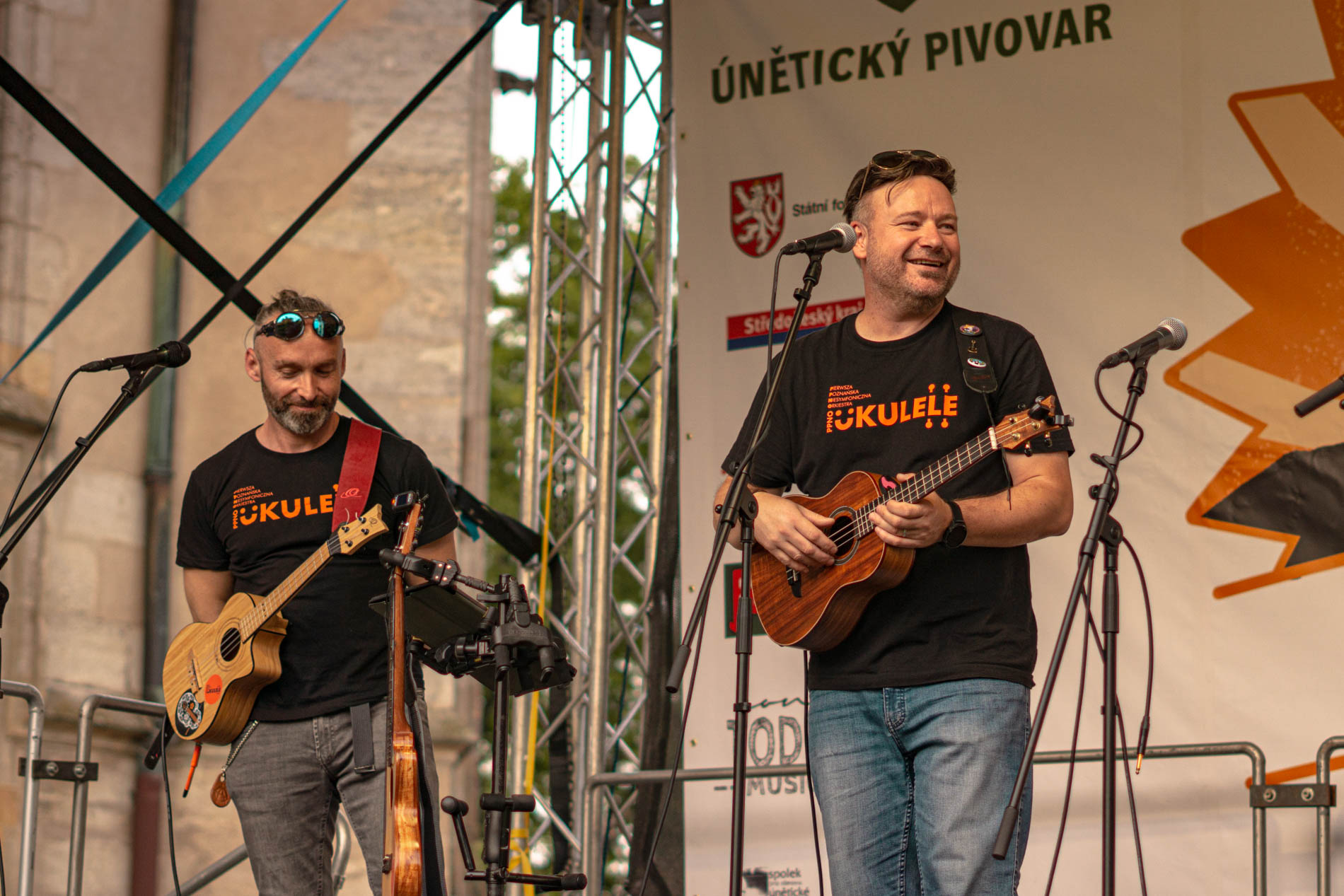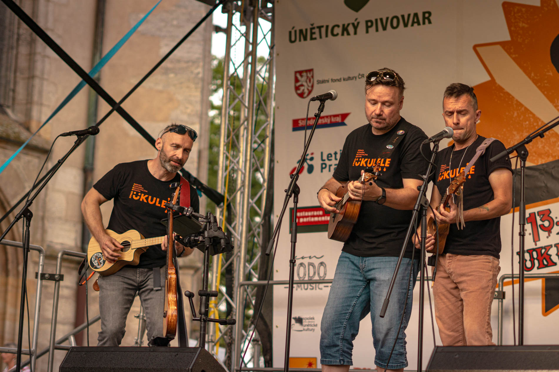 Pohoda, radost a líbezné tóny ukulele. U chrámu sv. Barbory se sešli umělci z celého světa na prvním dni Českého ukulele festivalu, nejstarším a největším svého druhu v Evropě.