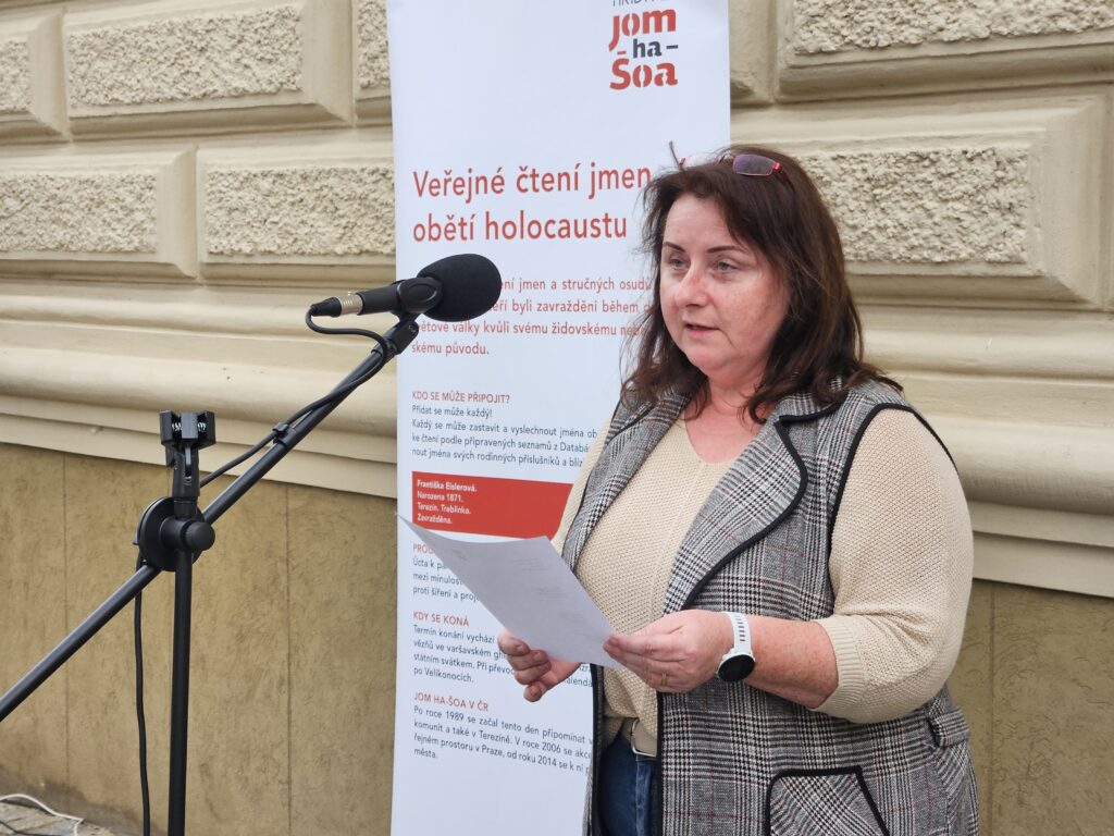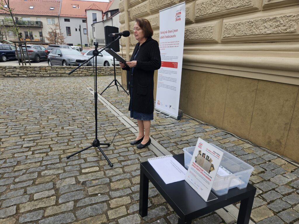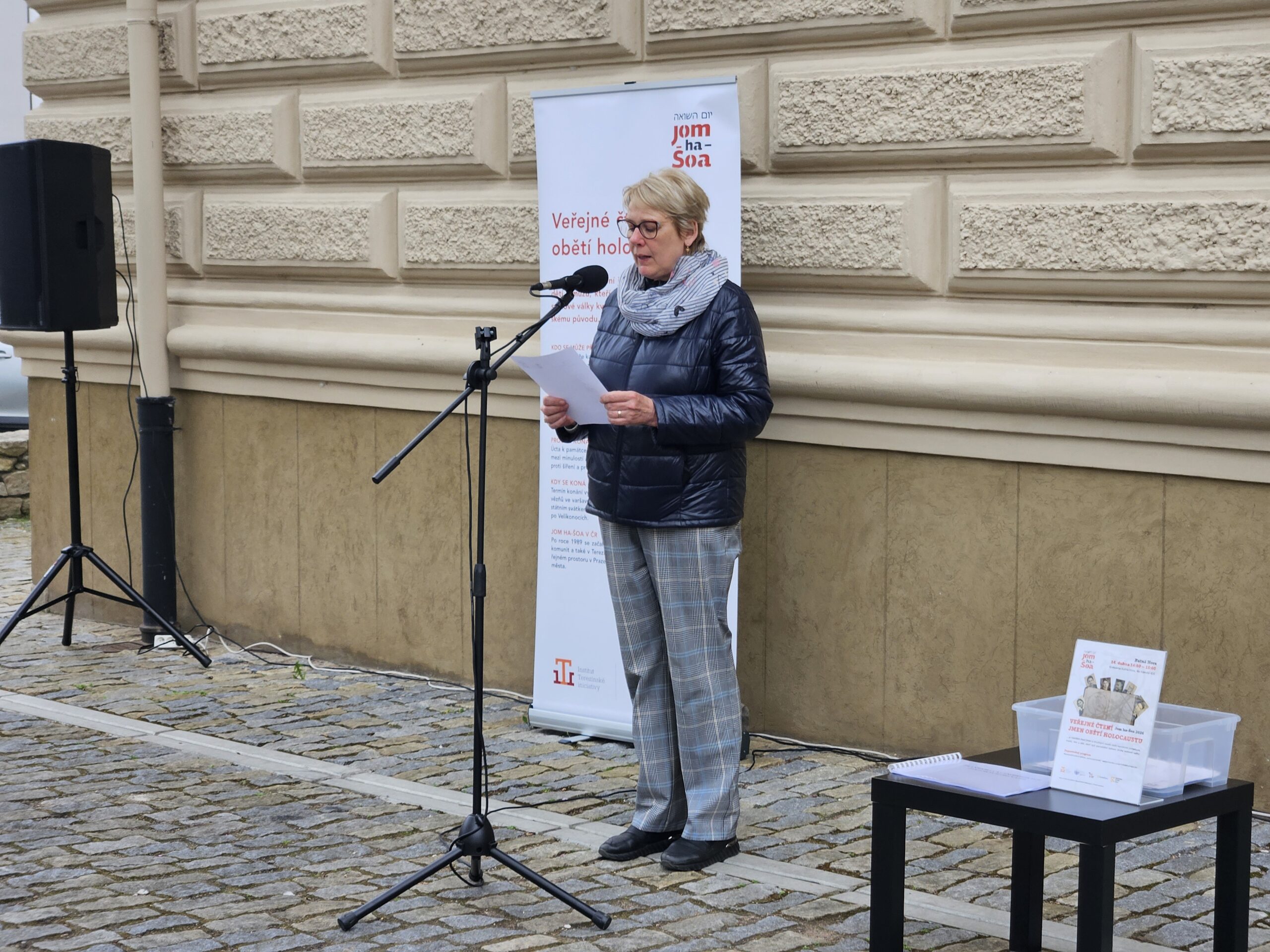 Úvodního slova vzpomínkové akce se ujala knihovnice Lenka Frankovicová, která připomněla osobnost doktorky Dagmar Lieblové. Ve svém vystoupení zdůraznila, že setkávání u příležitosti Jom ha-Šoa se již stalo tradicí, během níž si společnost na veřejných místech připomíná oběti jedné z největších tragédií dějin lidstva. Připomněla také, že mnozí z těchto lidí žili své obyčejné, každodenní životy, srovnatelné s těmi dnešními, než byli násilně vytrženi ze svých rodin, měst i okruhu přátel.