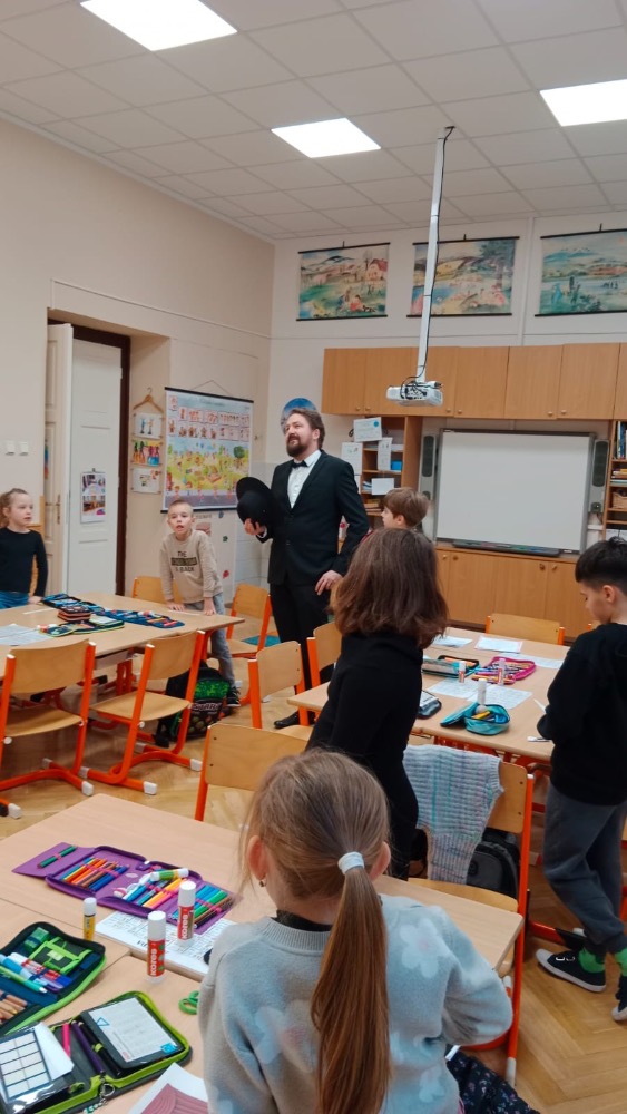 Třešničkou na dortu bylo malé překvapení v podobě návštěvy samotného autora. Samozřejmě herecky ztvárněného členem ochotnického spolku Tyl a zároveň kolegou T. Morawskim. Děkujeme mu tímto, že nás na chvilku vzal do 19. století. Výstupem z tohoto projektu bude velká kniha z kartonu, kde budou pohromadě veškeré aktivity.