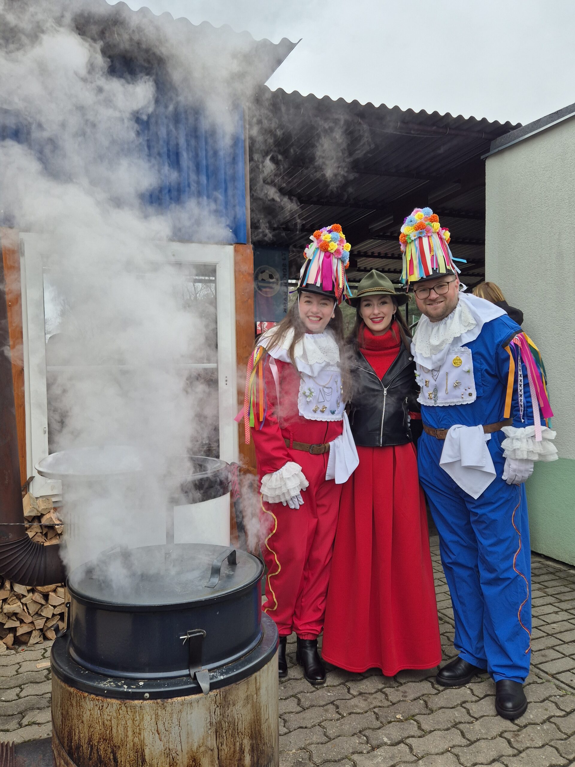 Masopustní průvod byl symbolicky zakončen opět na hřišti „zastřelením medvěda“. Účastníci masopustu a všichni příchozí si mohli také pochutnat na zabijačkových dobrotách i dalším občerstvení.