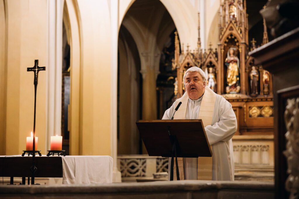 „Oslovili jsme light designera Karla Karlose Šimka, který se s naší katedrálou důvěrně seznámil během Festivalu světla v březnu 2025,“ uvedla Radka Krejčí, ředitelka organizační složky farnosti. „Když jsme jeho práci poznali, bylo jasné, že chceme, aby se vrátil – a kdy jindy než právě na Červenou středu, v den připomínající víru, svobodu, toleranci a solidaritu s oběťmi náboženského pronásledování, a zároveň vystupující proti násilí páchanému ve jménu víry,“ podotkla Radka Krejčí.
