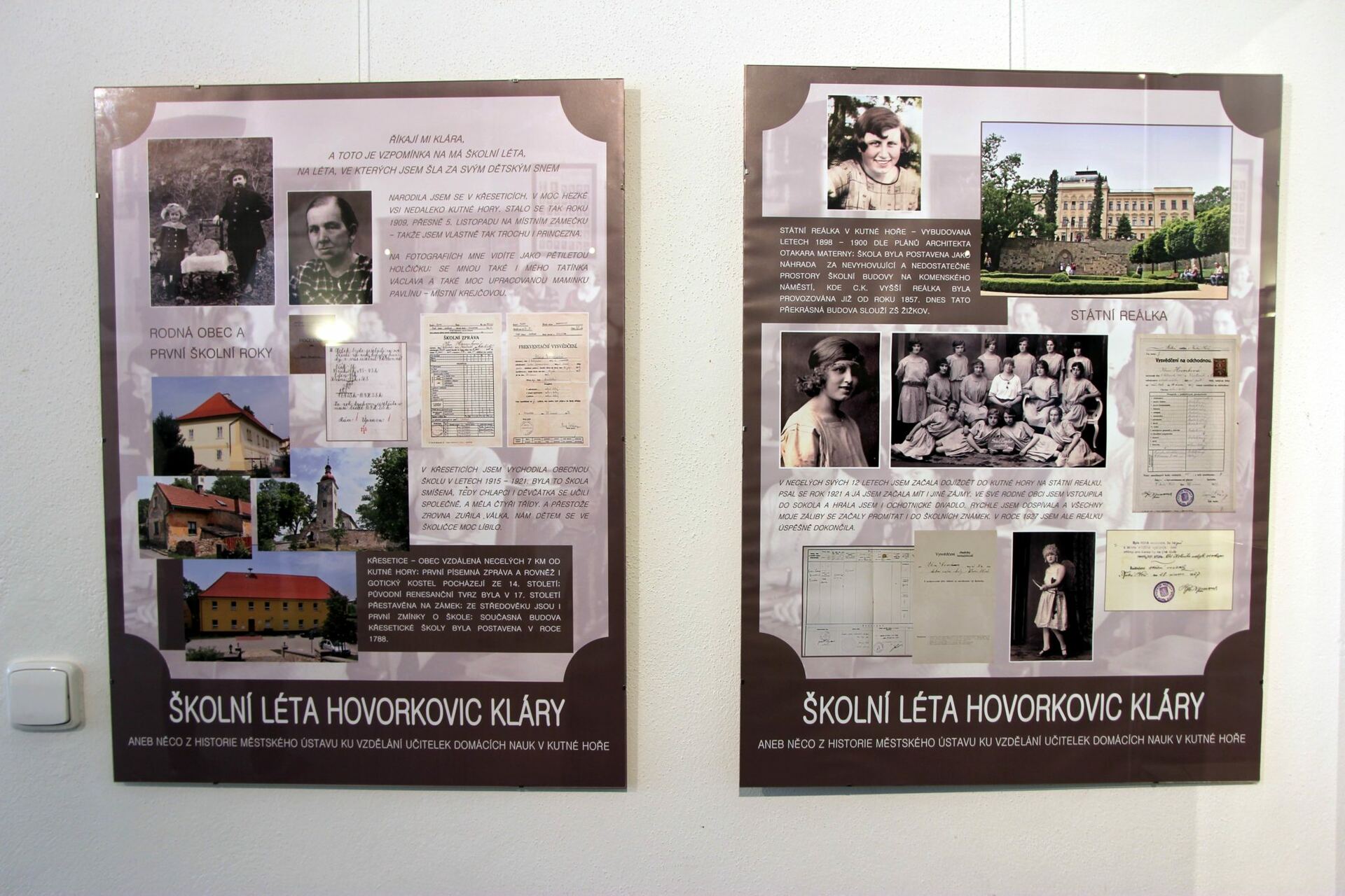 Školní léta Hovorkovic Kláry je název výstavy, která byla 12. června slavnostně zahájena ve Spolkovém domě v Kutné Hoře. Klára Hovorková byla absolventkou Městského ústavu ku vzdělání učitelek domácích nauk v Kutné Hoře, založeného Ministerstvem školství a osvěty v roce 1919.