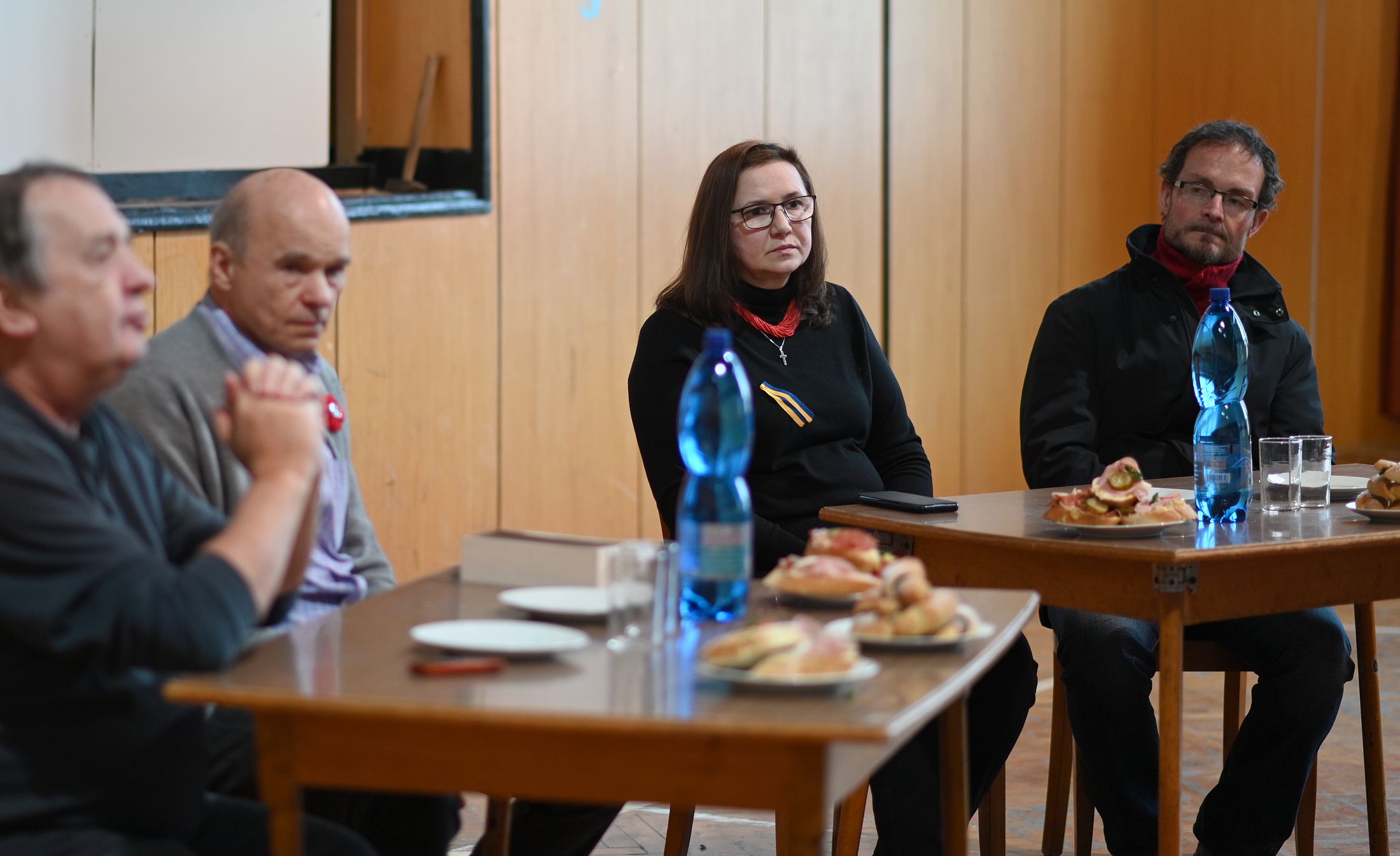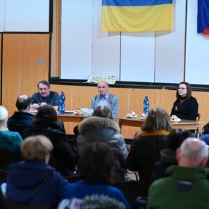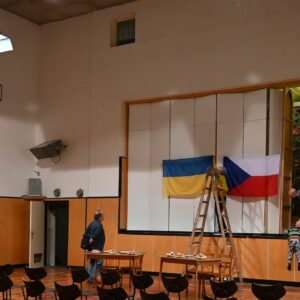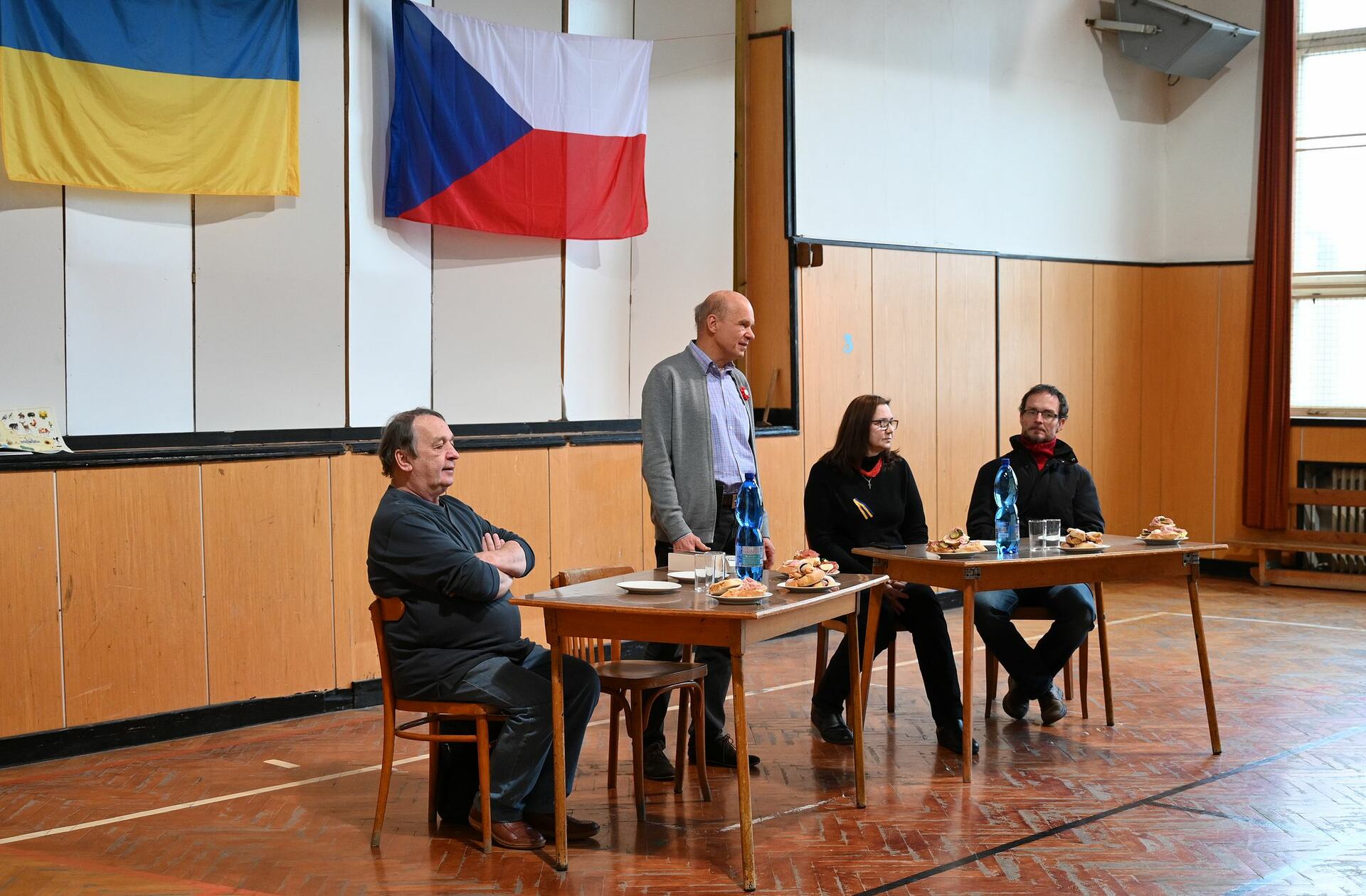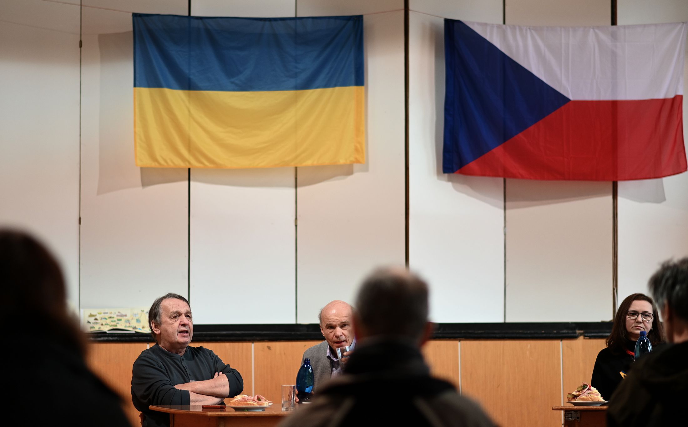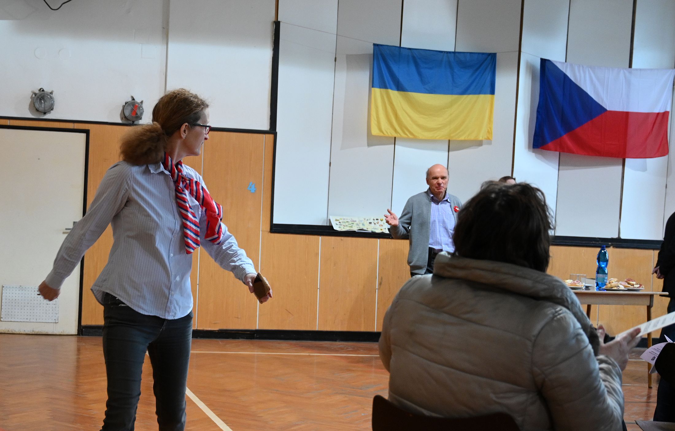 „Podařilo se nám vypůjčit si ukrajinskou a českou vlajku. Hlavně ta první je dnes vzácná,“ uvedl Libor David, který besedu inicioval a ve spolupráci se členy T. J. Sokol zorganizoval. Besedy se účastnilo kolem čtyřiceti lidí. „Se zájmem si vyslechli oba pozvané. Pan Libor Dvořák je překladatel a zahraniční redaktor Českého rozhlasu, o současné krizi hovoří denně v televizi a v rozhlase. Paní Oksana Skálová je Ukrajinka žijící už 27 let v České republice. Už 18 let je provdaná za Čecha, žijí v Pečkách na Kolínsku. Má příbuzné a přátele na různých místech Ukrajiny i v Rusku, také na okupovaném Krymu, kam za příbuznými jezdila od dětství. Proto mohla podat svědectví pro nás jinak těžko dostupné, také o nuceném pobytu mnoha Ukrajinců mimo vlast v době Svazu,“ doplnil Libor David s tím, že na místě bylo možné přispět hotově do zapečetěné kasičky sbírky Charity ČR na pomoc Ukrajině.