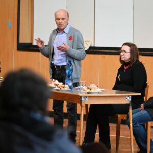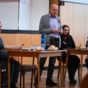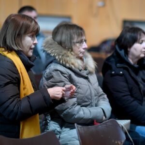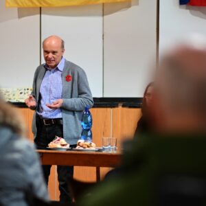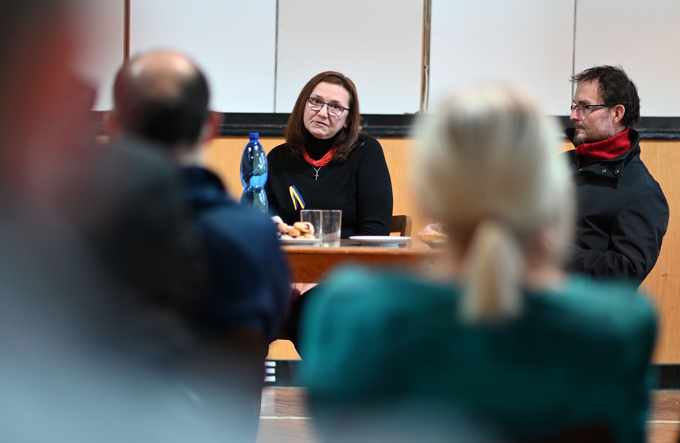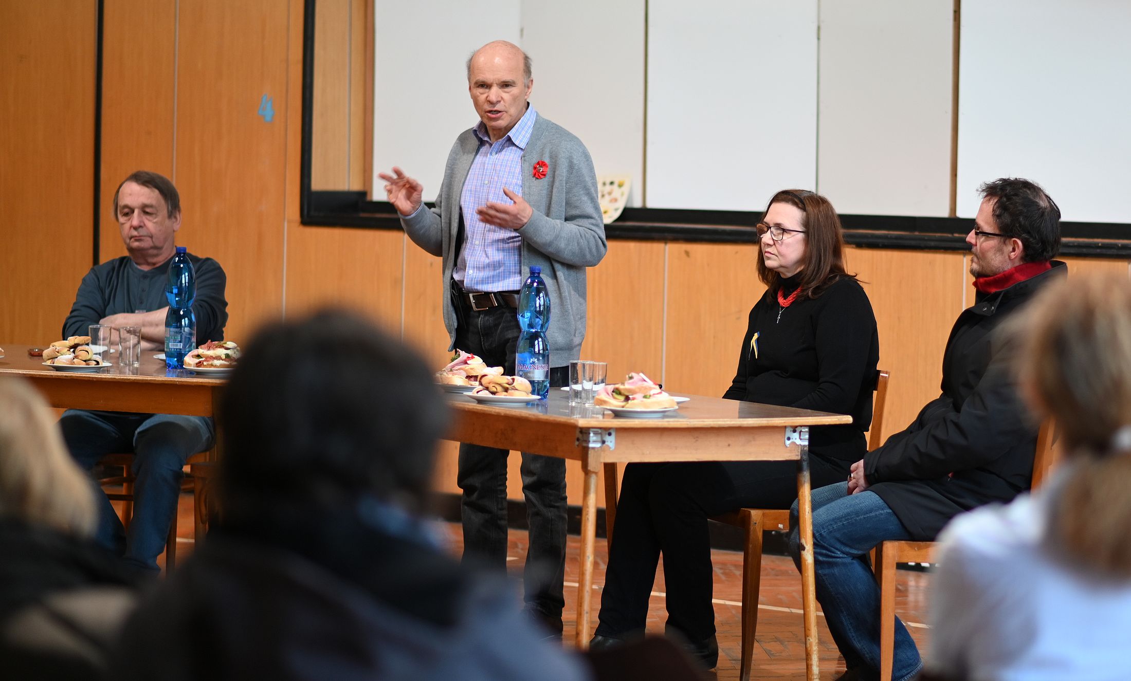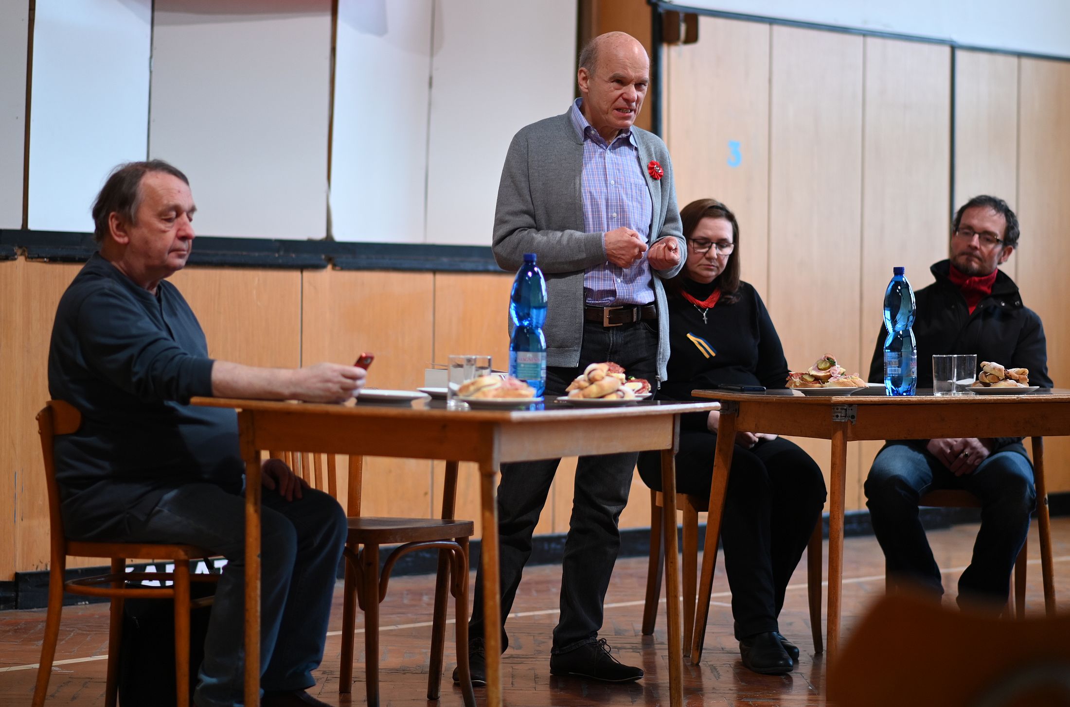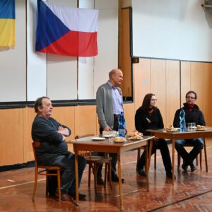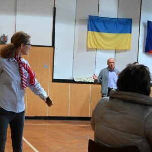„Podařilo se nám vypůjčit si ukrajinskou a českou vlajku. Hlavně ta první je dnes vzácná,“ uvedl Libor David, který besedu inicioval a ve spolupráci se členy T. J. Sokol zorganizoval. Besedy se účastnilo kolem čtyřiceti lidí. „Se zájmem si vyslechli oba pozvané. Pan Libor Dvořák je překladatel a zahraniční redaktor Českého rozhlasu, o současné krizi hovoří denně v televizi a v rozhlase. Paní Oksana Skálová je Ukrajinka žijící už 27 let v České republice. Už 18 let je provdaná za Čecha, žijí v Pečkách na Kolínsku. Má příbuzné a přátele na různých místech Ukrajiny i v Rusku, také na okupovaném Krymu, kam za příbuznými jezdila od dětství. Proto mohla podat svědectví pro nás jinak těžko dostupné, také o nuceném pobytu mnoha Ukrajinců mimo vlast v době Svazu,“ doplnil Libor David s tím, že na místě bylo možné přispět hotově do zapečetěné kasičky sbírky Charity ČR na pomoc Ukrajině.