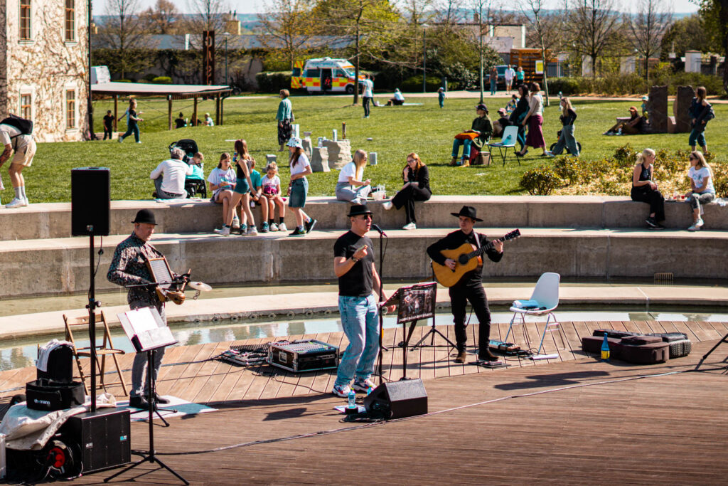 Už v dopoledních hodinách ožily zahrady GASK malými i velkými návštěvníky. Program celodenní akce zahájilo Divadlo Nosálci představením pro děti v 10:00 a o hodinu později zájemci navštívili komentovanou prohlídku stálé expozice Labyrintem s kurátorkou Vandou Skálovou. Milovníci umění odpoledne zavítali na další komentované prohlídky výstav v prostorách GASK, konkrétně na výstavy Šla jsem do masny s autorkou Marcelou Vichrovou a kurátorkou Vandou Skálovou, Nadivoko s autorem Petrem Válkem a kurátorkou Veronikou Marešovou, TRASUMANAR s autorem Radimem Langerem a kurátorkou Adrianou Primusovou a výstav Tradiční rodina a Audience s autorem Jakubem Berdychem Karpelisem a kurátorkami Veronikou Marešovou & Marcelou Strakovou.