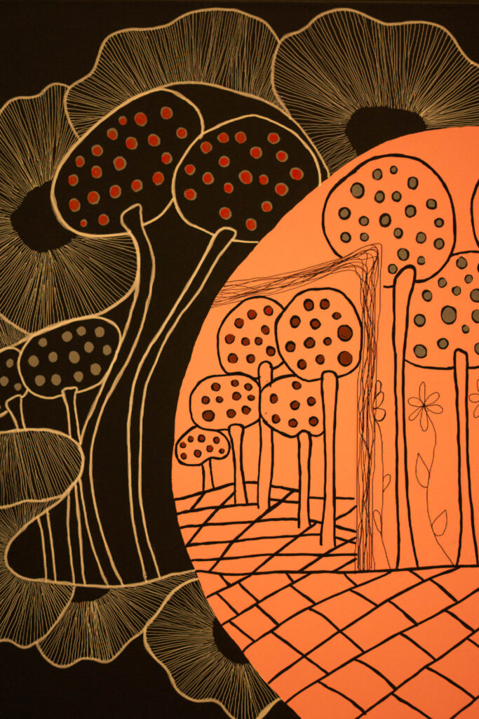 Obrazy jsou malovány způsobem, který se principiálně blíží technice malování na keramiku. „Vedle lásky k zahradě se v mých obrazech odráží také potřeba jednoduchosti a zkratky. Jednoduchý tvar, jasné linie a rytmus se pro mě stávají nositelem obsahu,“ upřesnila autorka výstavy. Obrazy jsou věcné a nesou paměť místa a času.