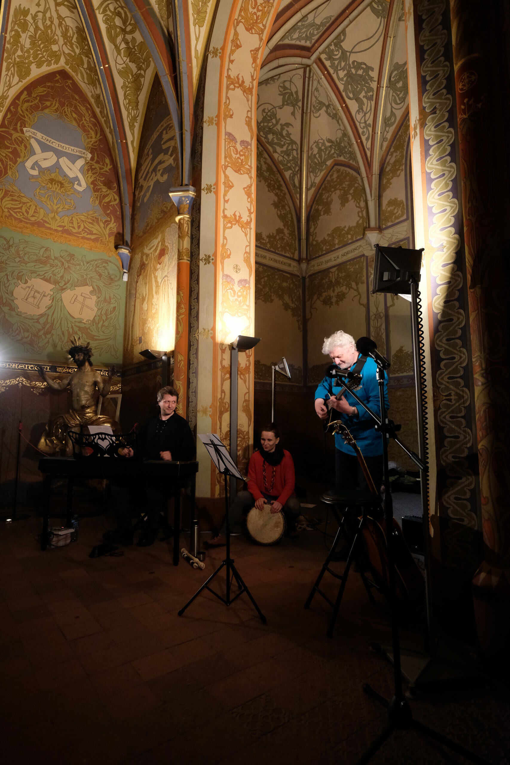 V kapli Vlašského dvora zněly příjemné melodie v podání skupiny Je to Jedno. Po vítání jara 20. března na nádvoří zahraje 30. března v kapli cimbálová muzika