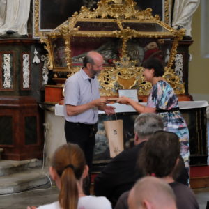 Sváteční atmosféru vernisáže podtrhla varhanní hudba