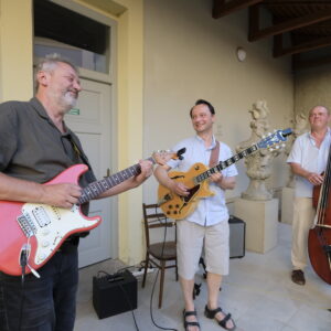 byla příjemným místem setkání rodinných příslušníků autorek, kamarádů i milovníků současného výtvarného umění. O hudební zpestření vernisáže se postarala jazzová kapela Double Guitar Quartet.