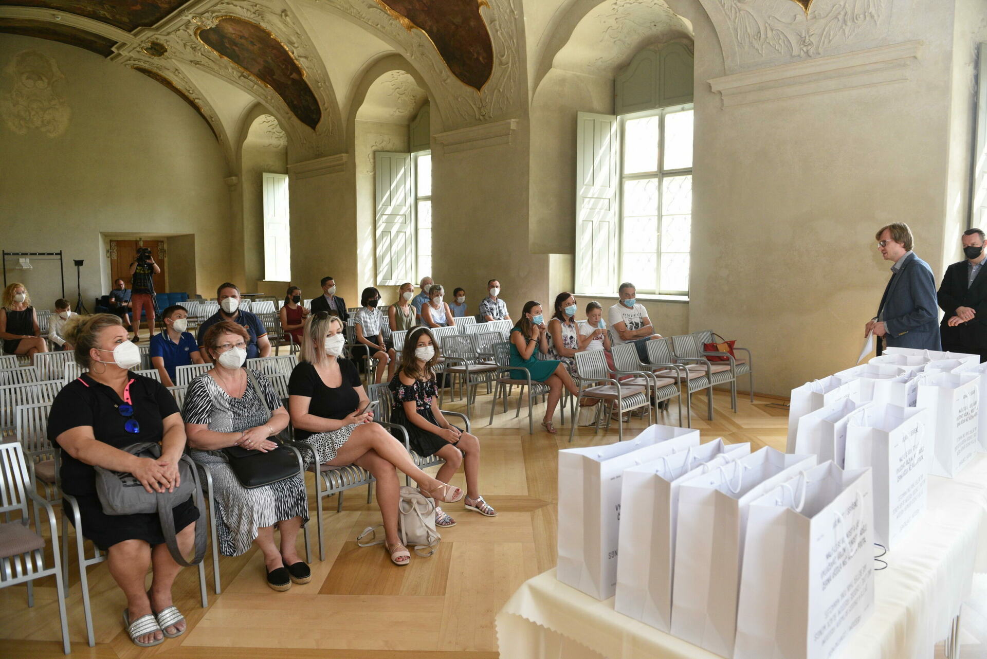 Výherce soutěže, kteří dorazili se svými pedagogy a rodinnými příslušníky, přivítali zástupci Středočeského kraje a GASK v krásných prostorách barokního refektáře v jezuitské koleji. Všechny potěšily kromě diplomů také krásné ceny, které jim pomohou i nadále rozvíjet jejich talent v oblasti výtvarného umění. Od Středočeského kraje získali výtvarné sady Koh-i-noor a poukázky na volný vstup do muzeí a galerií zřizovaných Středočeským krajem, rodinnou vstupenku do GASK nebo edukační program Lektorského centra GASK.