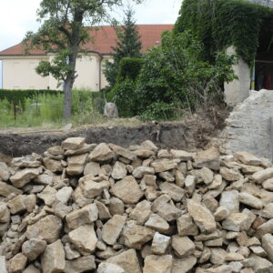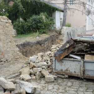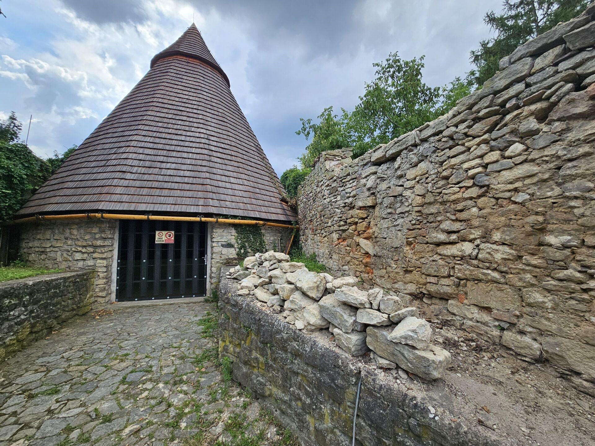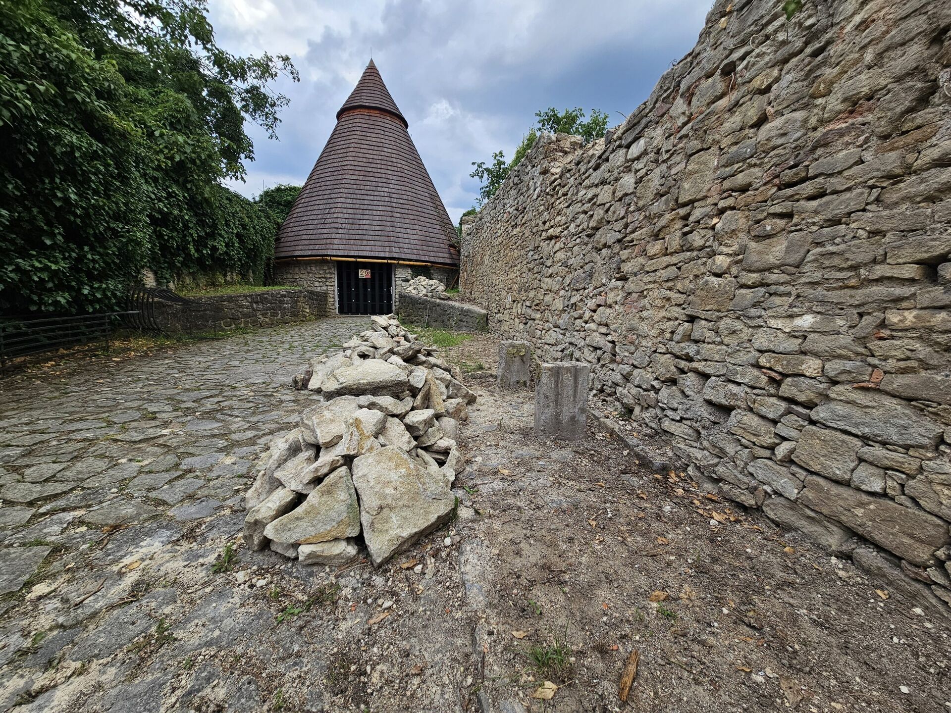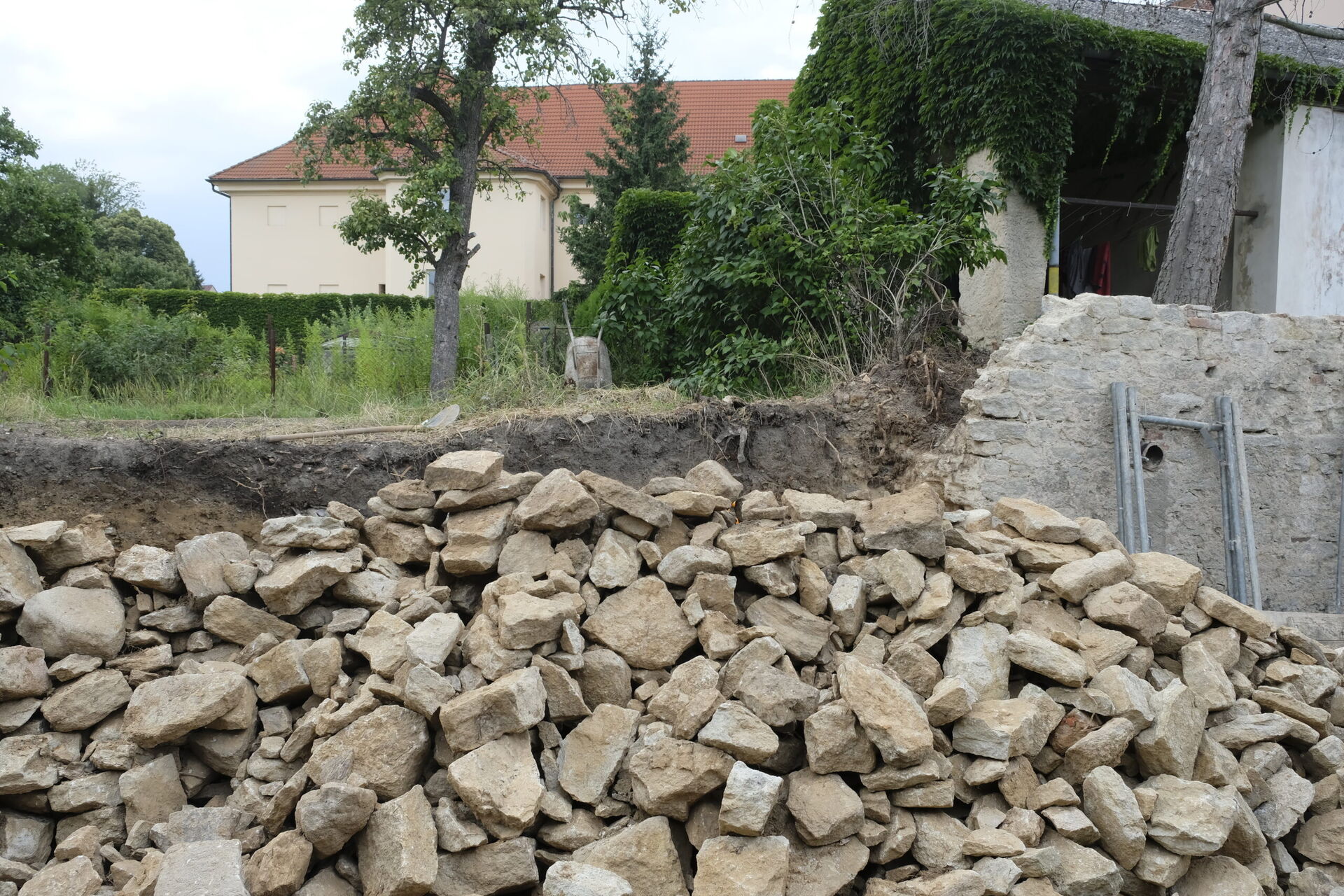 Opravu kamenné ohradní zdi u domu čp. 56 na náměstí Národního odboje v Kutné Hoře v délce 45 m zahájilo město letos v červenci. Jak doplnila Věra Janatová z oddělení památkové péče, práce si vyžádají investici bezmála 2,4 milionu korun včetně DPH, z toho 390 tisíc korun činí dotace z programu regenerace městských památkových rezervací a městských památkových zón Ministerstva kultury České republiky. Souběžně s tím pracovníci prováděcí firmy zajistili vyklizení prostranství. Termín dokončení prací je dle smlouvy o dílo 30. listopadu 2025.