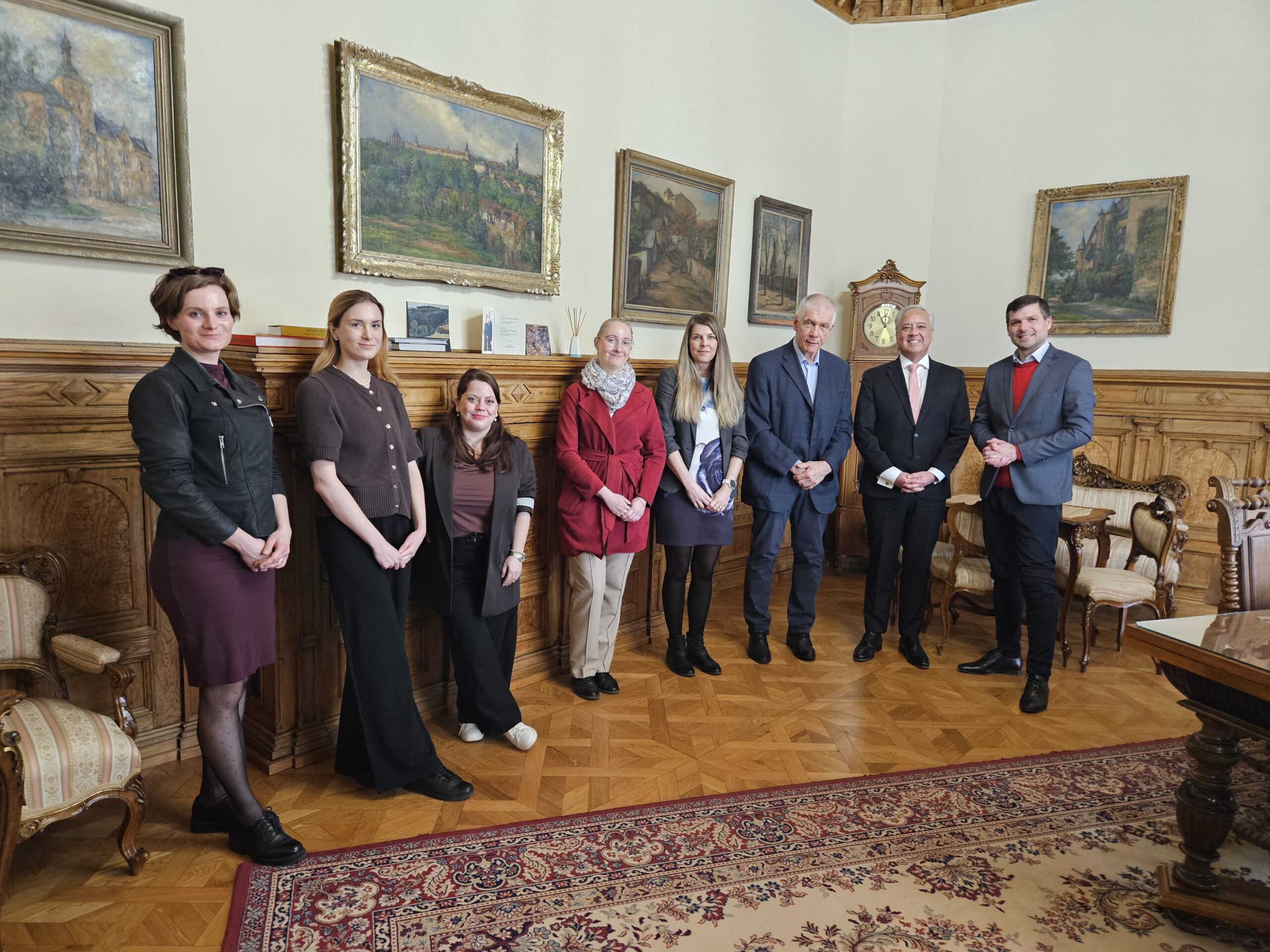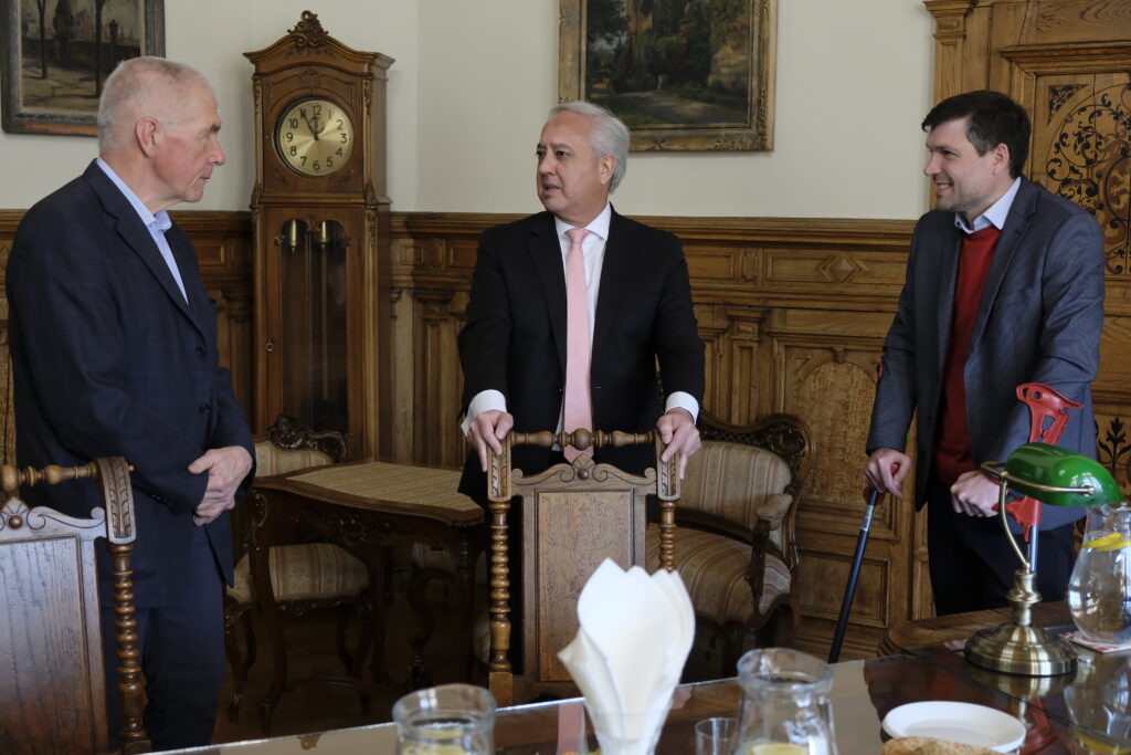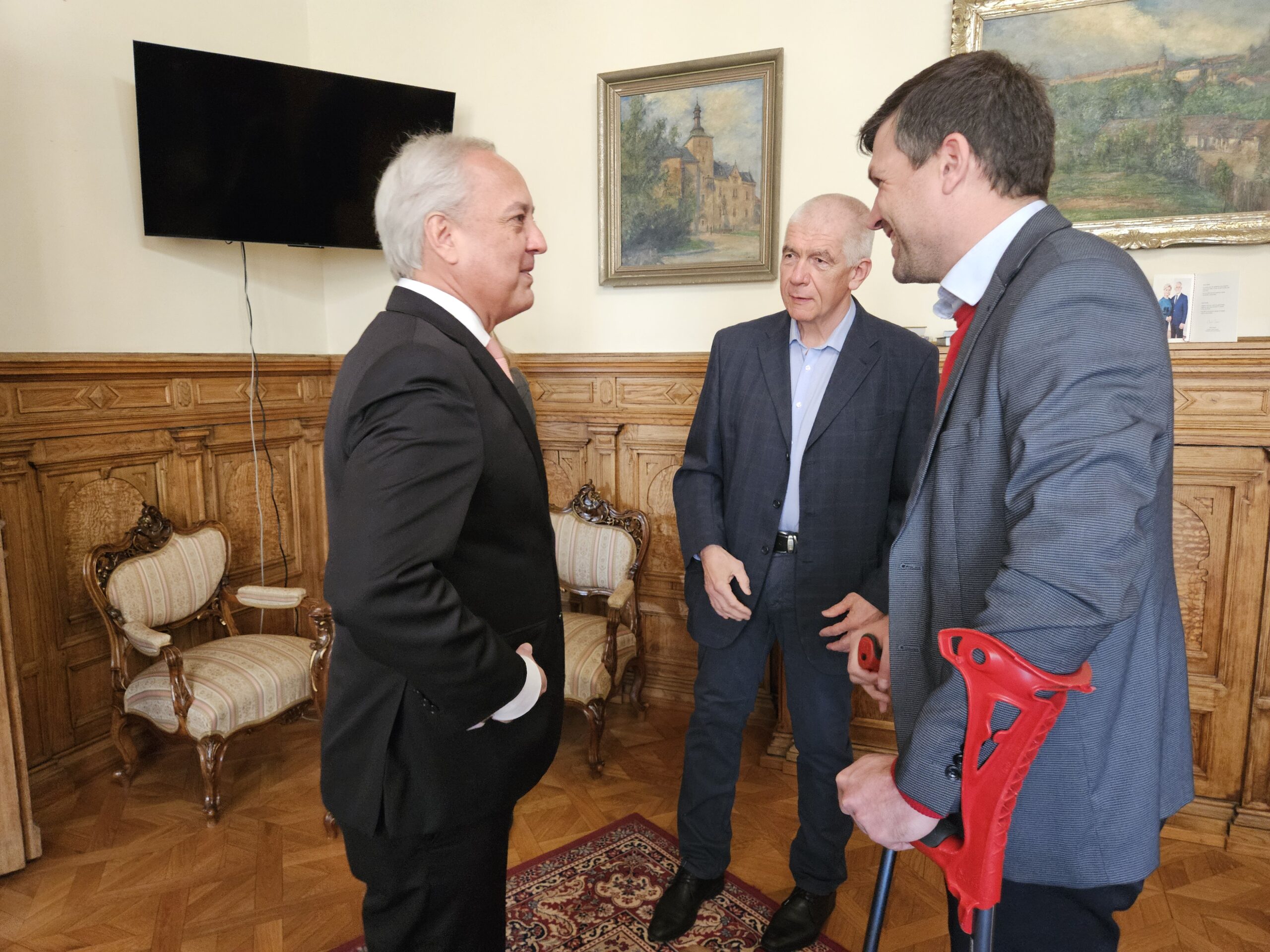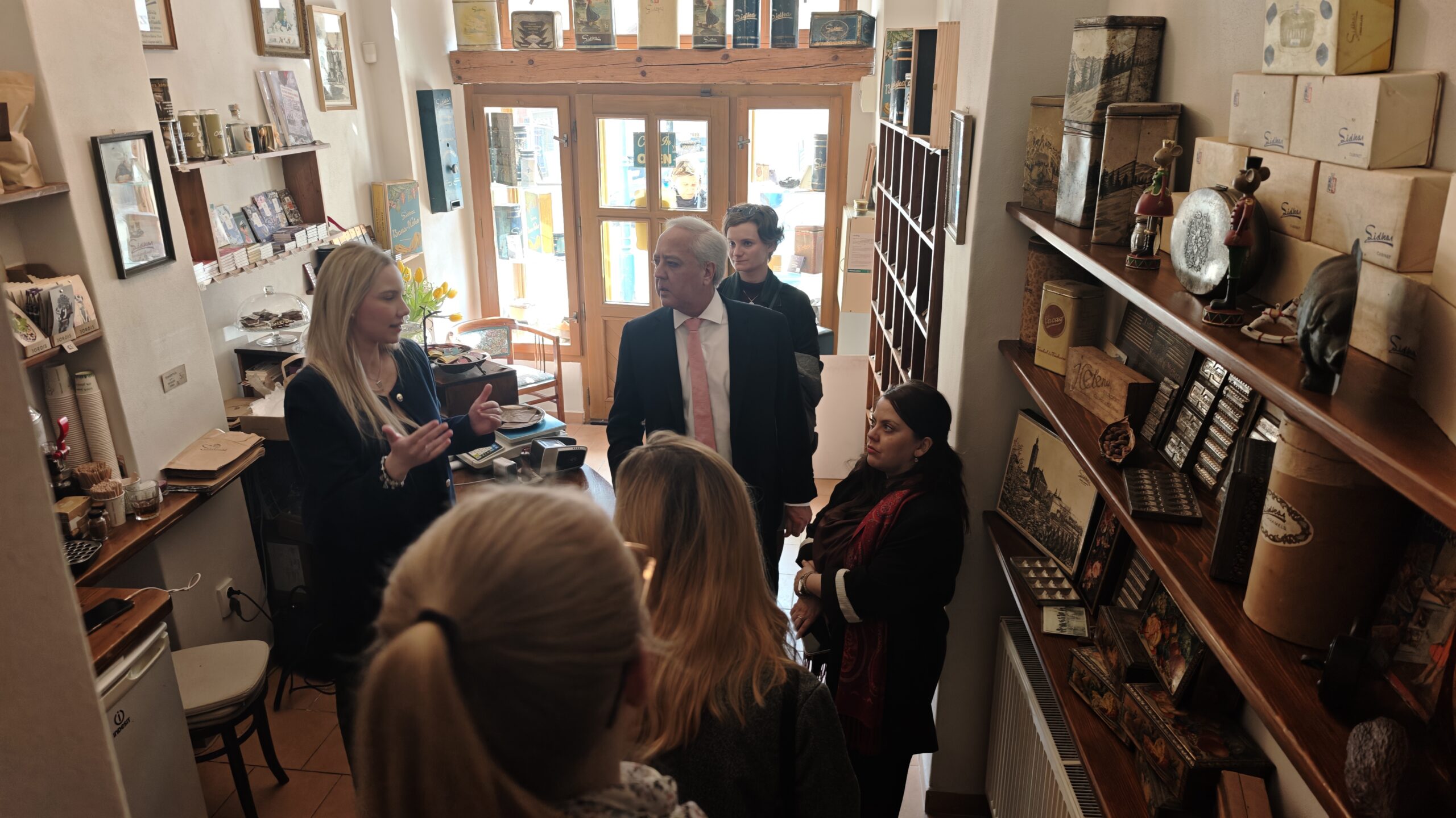 Setkání ve Vlašském dvoře začalo v kanceláři starosty města Lukáše Seiferta, kde se k němu připojil bývalý starosta a zastupitel Ivo Šanc. Diskutovalo se o aktuálním dění ve městě, životním prostředí, rozvoji podnikání a obchodu, ale také o cestovním ruchu v souvislosti s pojmem overturismus, kultuře, sportu a vzdělávání.