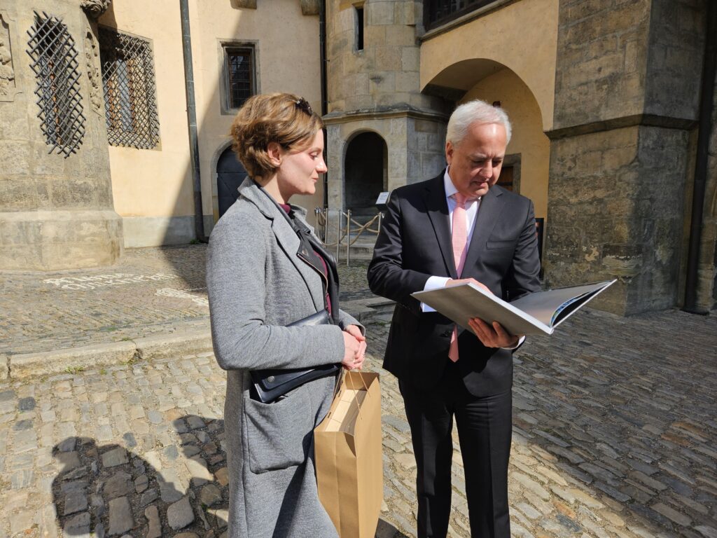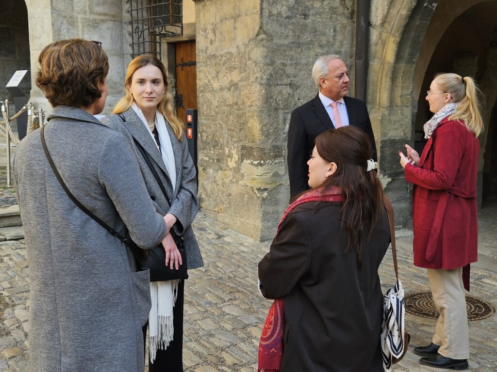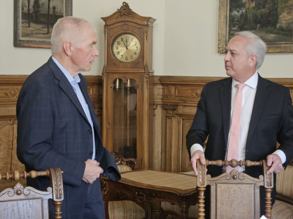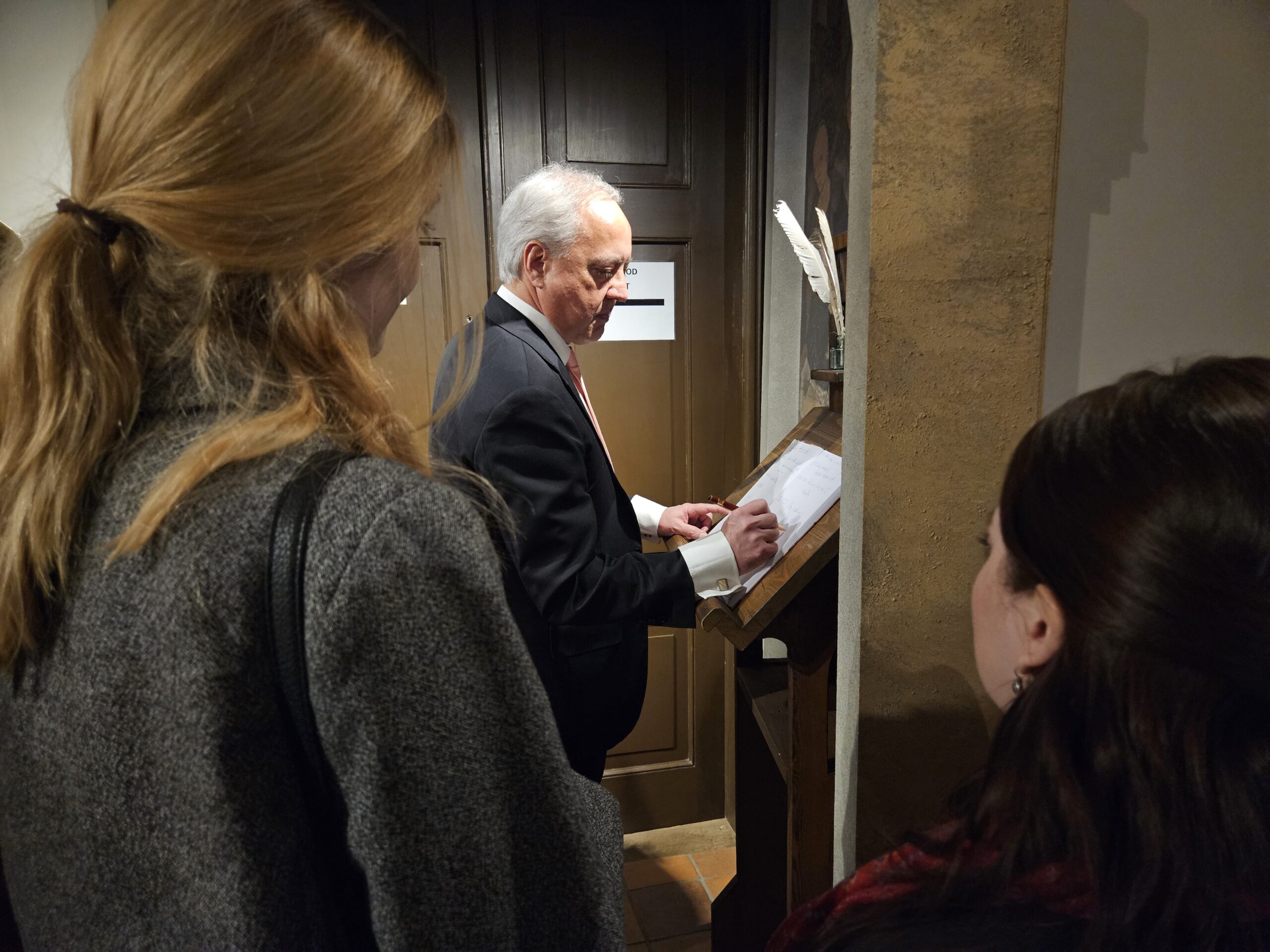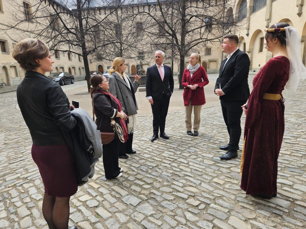 Setkání ve Vlašském dvoře začalo v kanceláři starosty města Lukáše Seiferta, kde se k němu připojil bývalý starosta a zastupitel Ivo Šanc. Diskutovalo se o aktuálním dění ve městě, životním prostředí, rozvoji podnikání a obchodu, ale také o cestovním ruchu v souvislosti s pojmem overturismus, kultuře, sportu a vzdělávání.