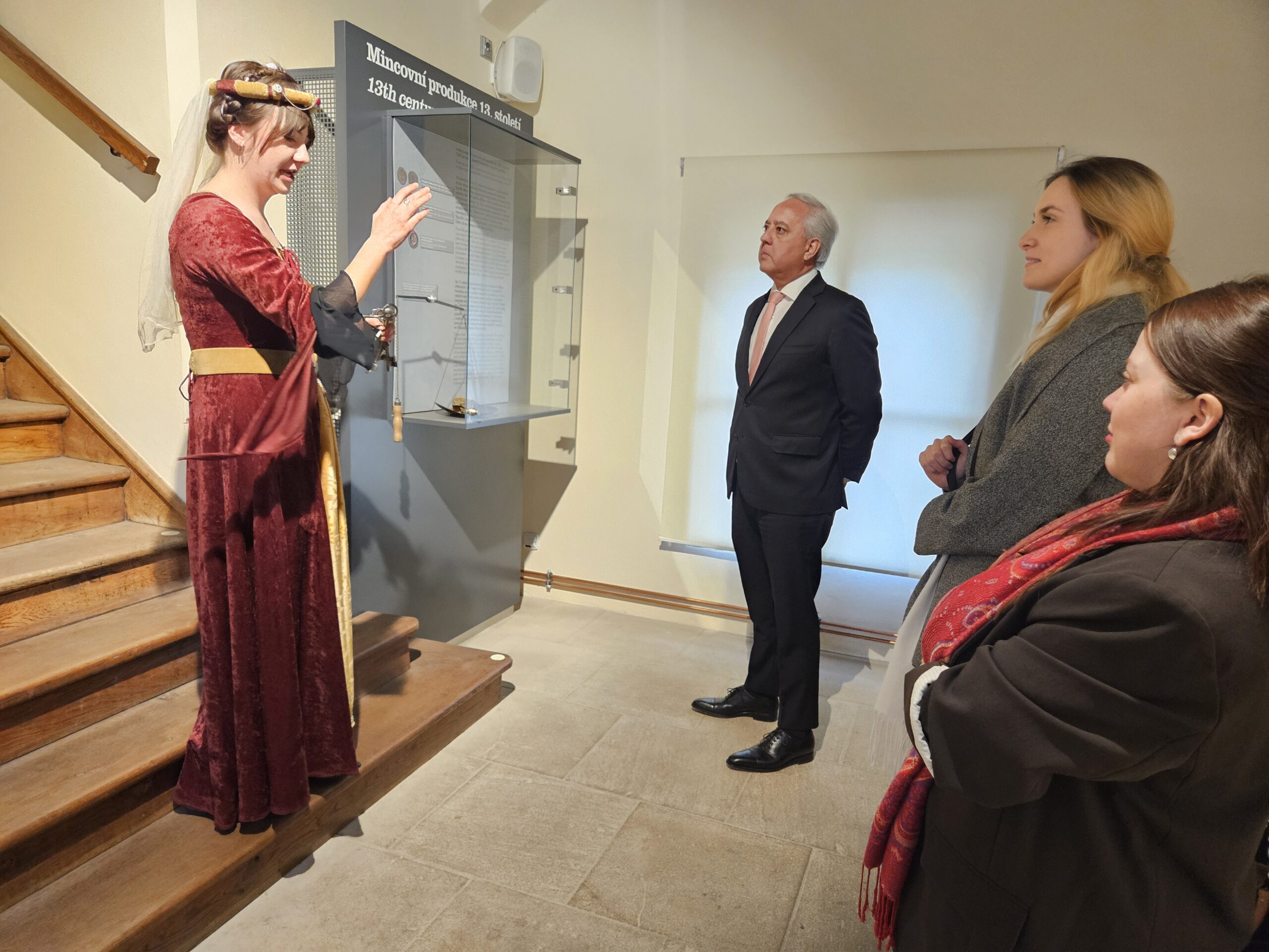 Program pokračoval prohlídkou Královské mincovny, kde byl představen výklad o historii stříbra a někdejším bohatství Kutné Hory ve středověku. Zatímco v Kutné Hoře se dnes stříbro už netěží, Peru patří stále mezi světové velmoci v jeho produkci.