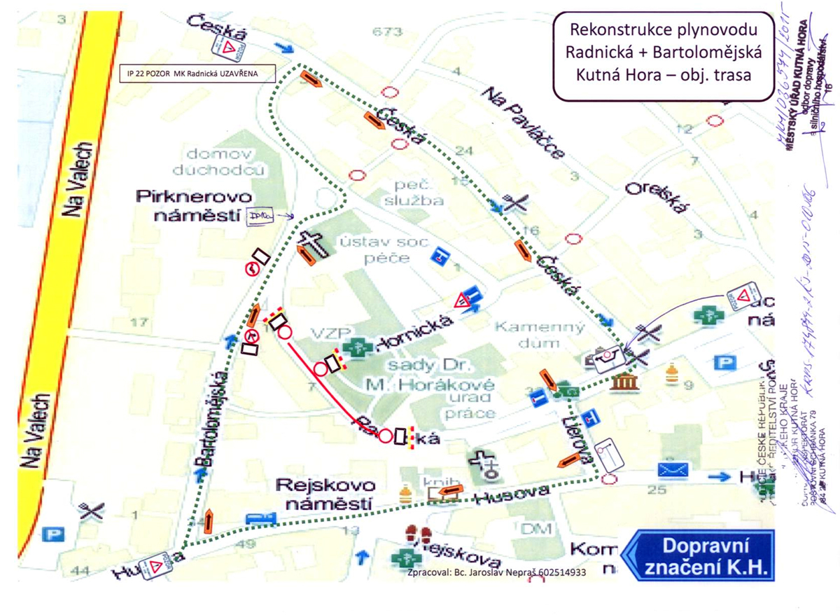 Z důvodu zajištění bezpečnosti a plynulosti silničního provozu po dobu provádění výkopových prací z důvodu „Stavební úpravy – Reko MS Kutná Hora – Radnická“ bude ode dne 8. 6. 2015 do dne 14. 6. 2015 uzavřena komunikace Radnická v úseku od křižovatky s ul. Bartolomějská po vjezd, výjezd na parkoviště MěÚ Kutná Hora, Radnická 178.
