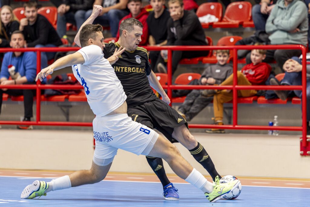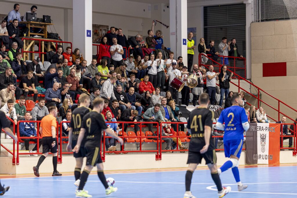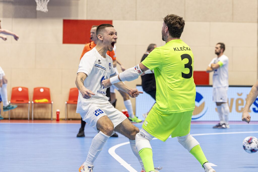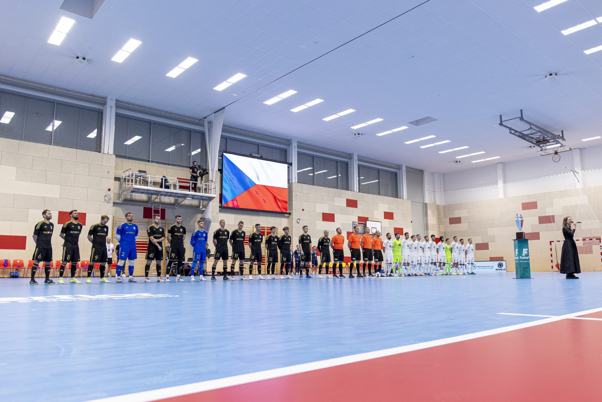 Byl to parádní souboj, ve kterém obě nejsilnější váhy českého futsalu předvedly své kvality. V prvním poločase padly dvě branky – nejprve ve třetí minutě předvedli souhru bratři Zápočtočtí – Jaroslav vysunul přihrávkou Jiřího a ten vyzval přesným křížným pasem na vzdálenější tyč ke skórování Mikuše – 1:0 pro Plzeň. V 9. minutě byl blízko vyrovnání chrudimský gólman Vahala, ale jeho střela se odrazila od tyčky. Na druhé straně napálil brankovou konstrukci Adam Knobloch. V 16. minutě bylo vyrovnáno – Koudelka dloubáčkem z rohu nalil na volej Seidlerovi, jeho střelu koníčkem nasměroval stehnem David Drozd na hlavu bratra Pavla a bylo to 1:1.