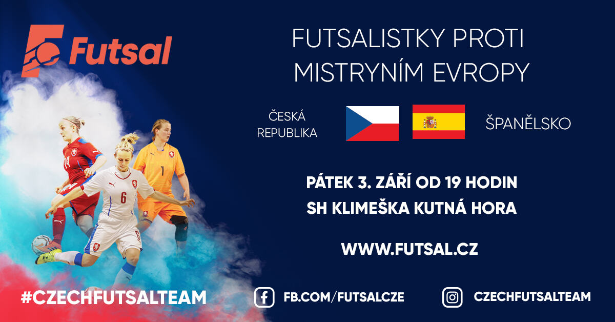 Česká futsalová reprezentace žen se připravuje na kvalifikaci o postup na EURO. Ke dvěma přátelským zápasům si do Česka pozvala úřadující evropské šampionky ze Španělska. Česká děvčata se s Jihoevropankami střetnou v pátek 3. září od 19 hodin ve sportovní hale Klimeška v Kutné Hoře. Odveta je na programu o den později. V sobotu 4. září se od 15 hodin bude hrát v pražské UNYP aréně.