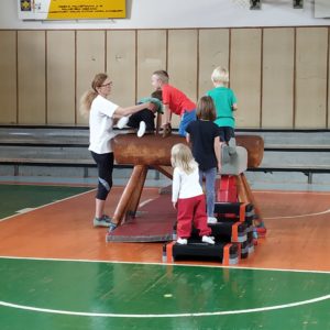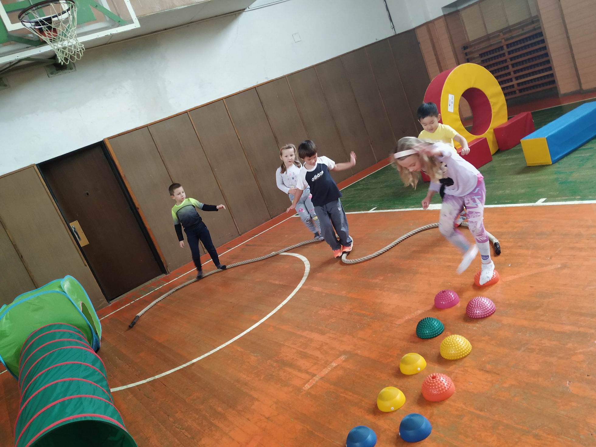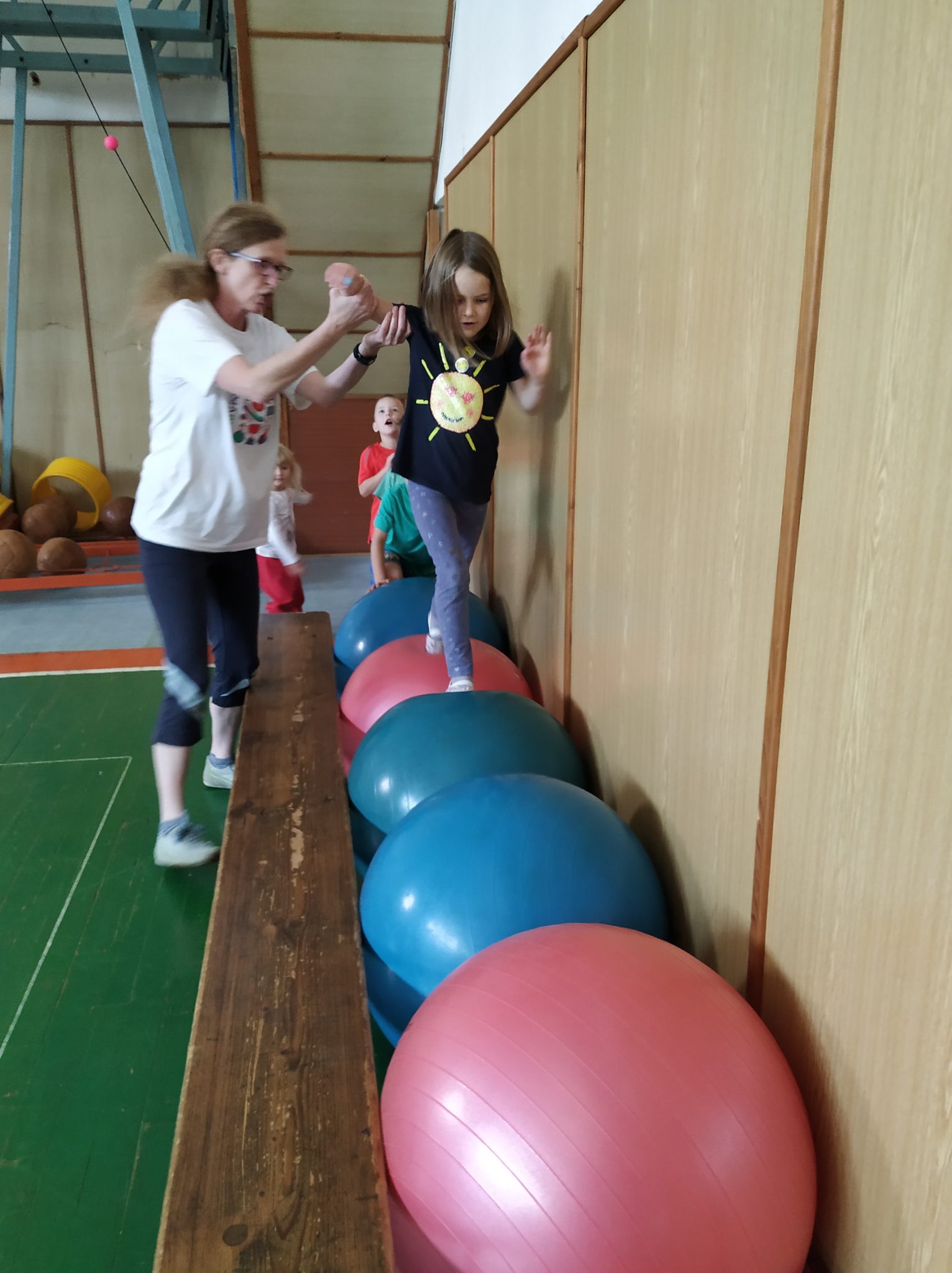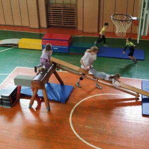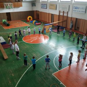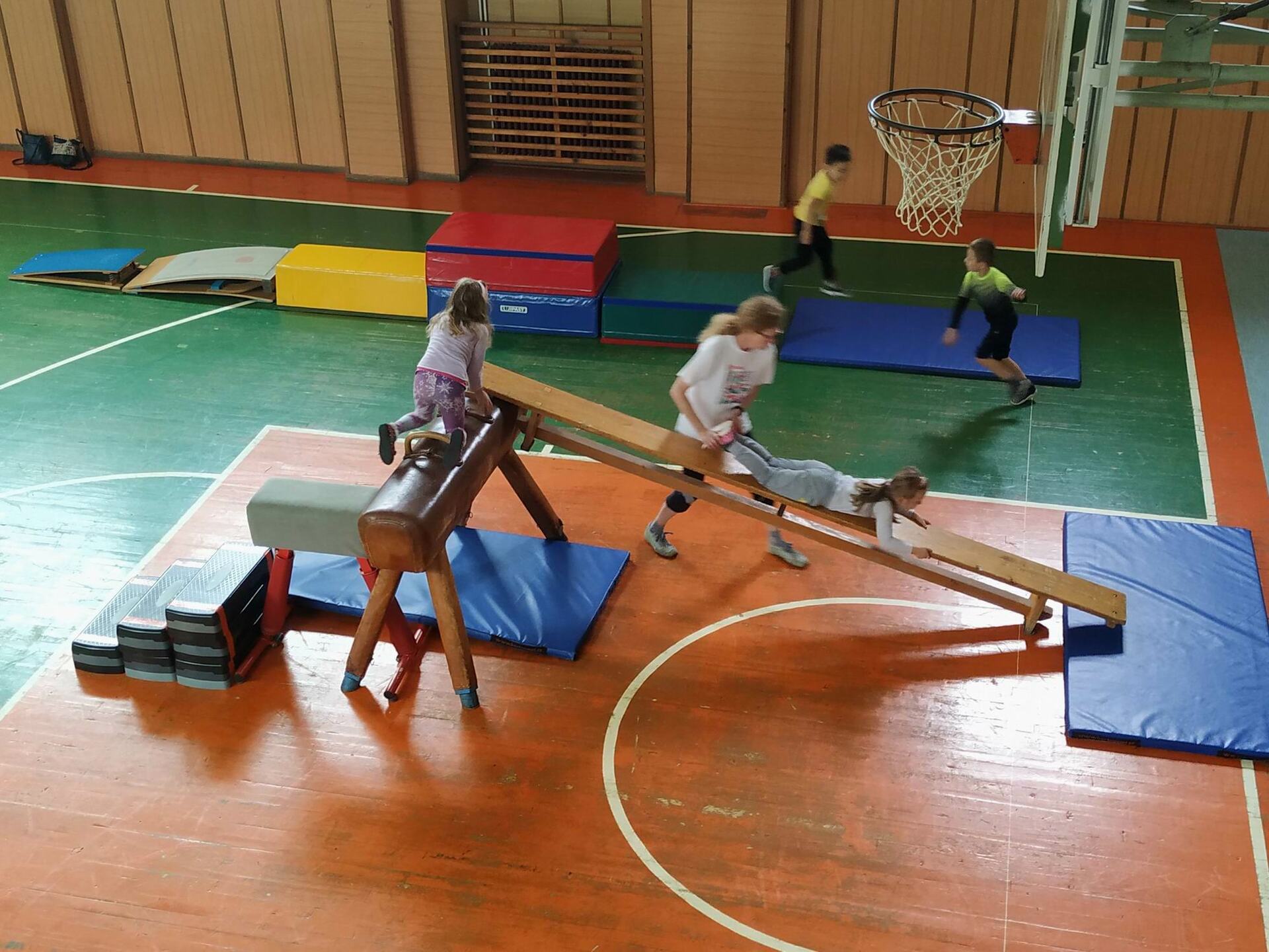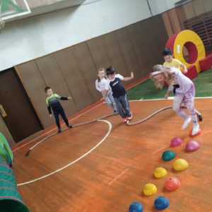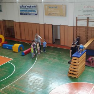 všechny možnosti využití dané sestavy a následně samy provázely skupinky dětí po tělocvičně.