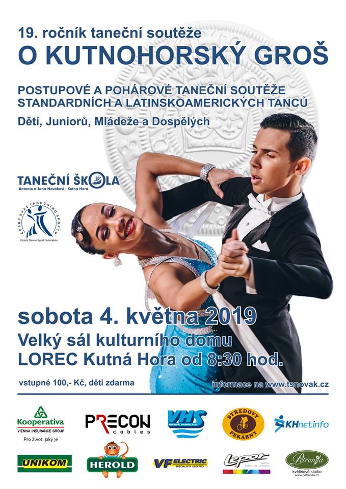 Přijďte se podívat na další ročník taneční soutěže „O KUTNOHORSKÝ GROŠ“, kterou už 19. rokem pořádá Taneční škola Novákovi Kutná Hora. Kromě velké účasti přes 300 tanečních párů ještě před uzávěrkou přihlášek (uzávěrka je ve čtvrtek 2.5. 2019 ve 22 hodin), se soutěž poprvé stává i soutěží mezinárodní a to díky přihlášeným tanečním párům z Polska.