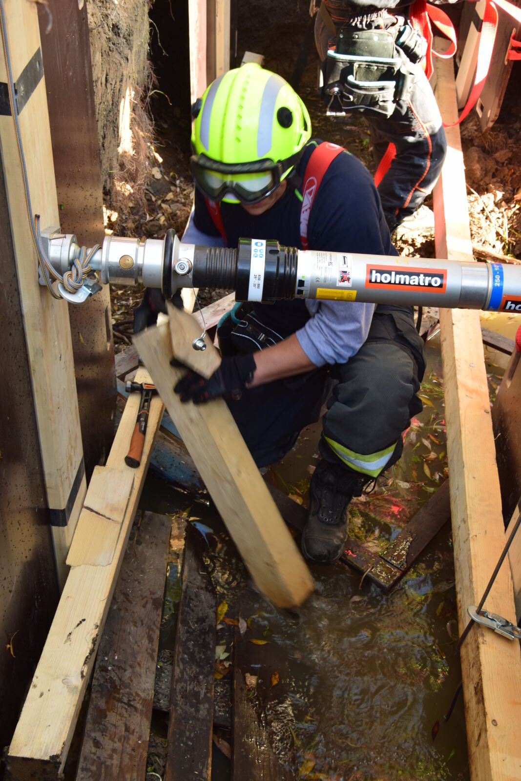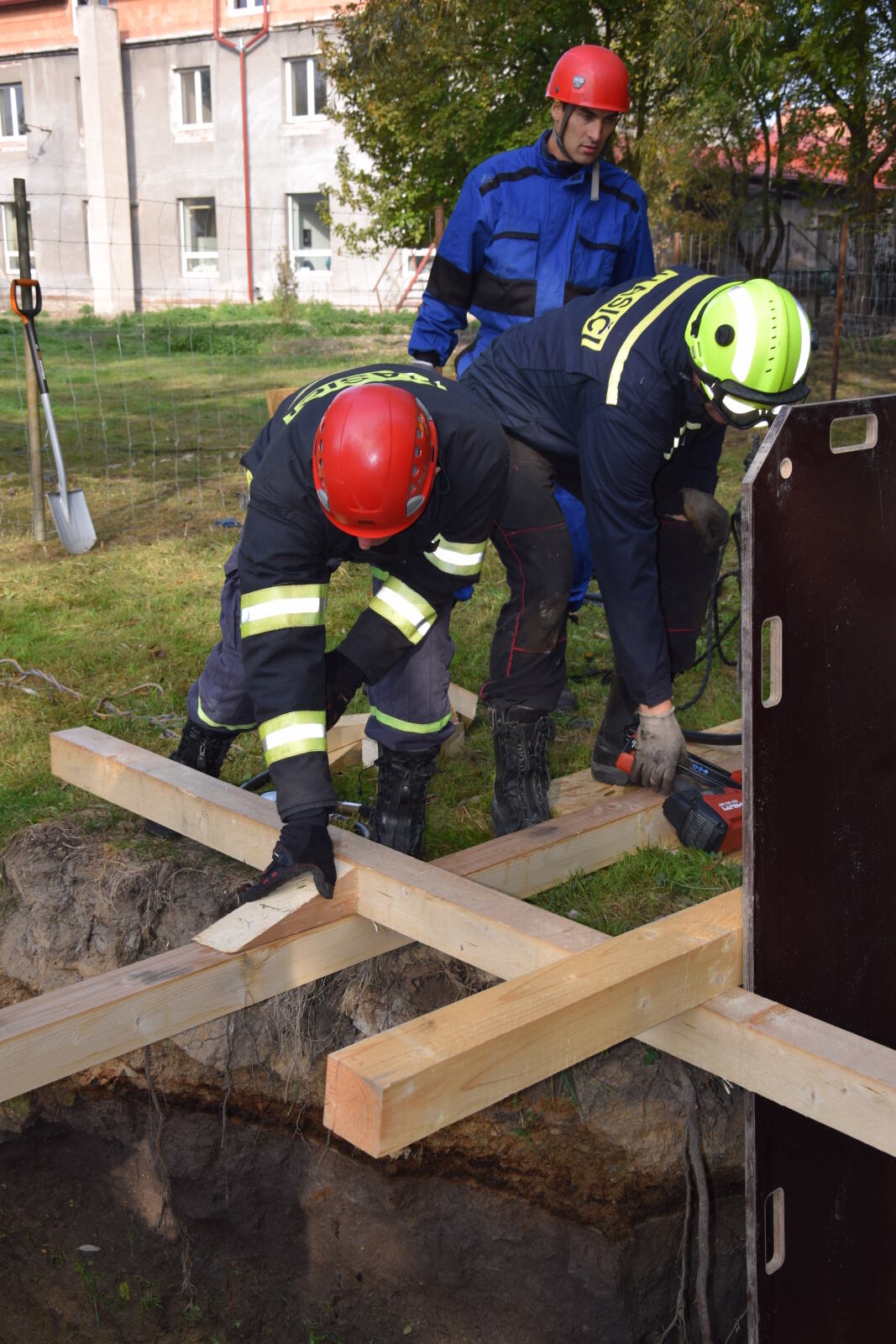 Hasiči využívali speciální hydraulické rozpěrné válce Holmatro a dřevěné desky, kterými zajistili stěny v blízkosti zasypaného figuranta. Po zajištění stěn sestoupili do výkopu a zajistili osobu, kterou pak pomocí nosítek a lan vytáhli. Hasiči si vyzkoušeli stabilizaci různých tvarů výkopů a variant závalů na velmi nestabilním podloží. Metodická příprava záchrany zavalených nebo zasypaných osob byla připravena tak, aby se scénáře jednotlivých situací co nejvíc podobaly reálným podmínkám.