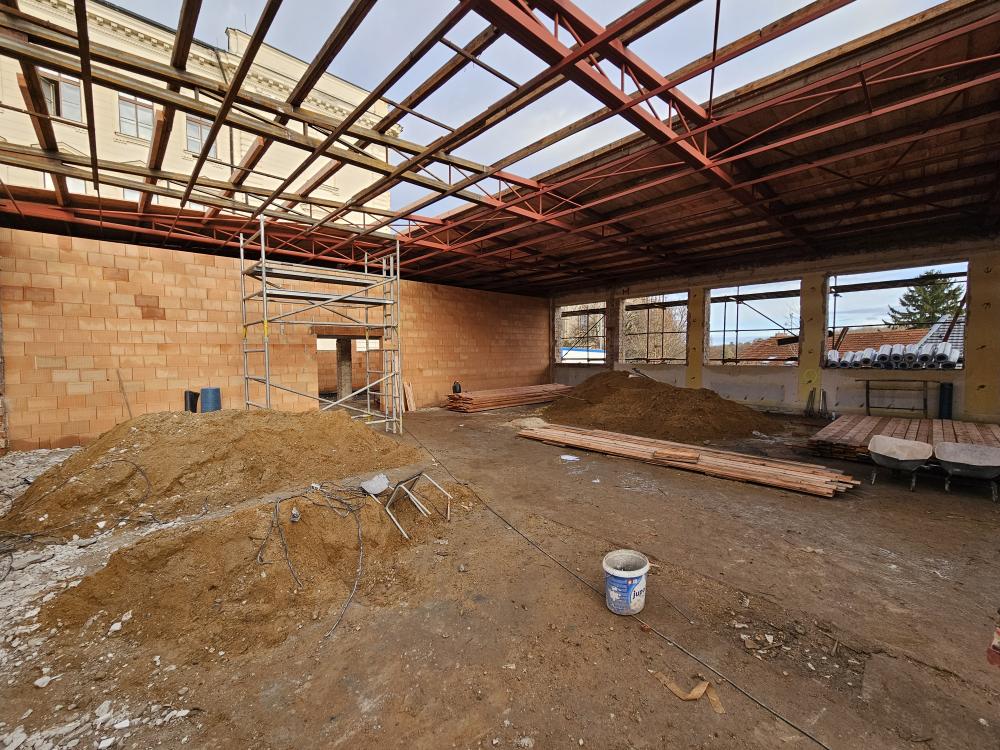 Projekt pokračuje podle plánu s dokončením v červnu 2026. Demoliční práce byly dokončeny a pokračuje vyzdívání vnitřních příček. Před dokončením je rovněž zesílení střešní konstrukce. Inženýrské sítě uvnitř objektu jsou budovány nové a nyní je realizována vyvolaná přeložka kabelového vedení ČEZ, očekáváno je však nadále napojení nové trafostanice, která byla vybudována v rámci školního parčíku. Letos tam bylo proinvestováno přibližně 4,5 milionu korun. Předpokládané náklady se pohybují okolo 50 milionů korun. Kvůli rekonstrukci byla zavedena rozsáhlá přechodná opatření pro výdej stravy. Tělocvična školy slouží jako provizorní výdejna jídel a jídelna. Starší žáci docházejí na obědy do jídelny Gymnázia Jiřího Ortena.
