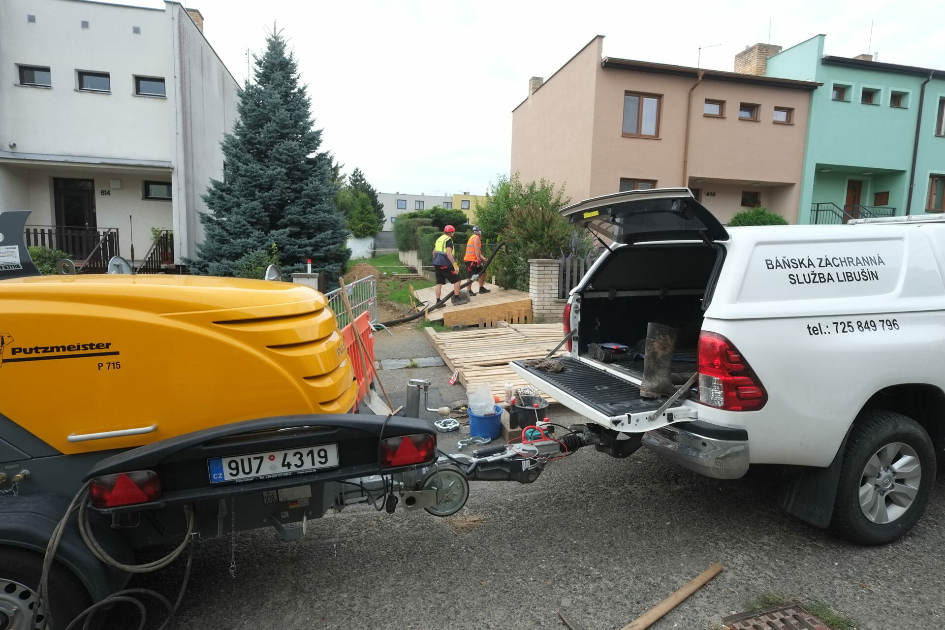 Pracovníci báňské záchranné služby začali zabezpečovat propad starého důlního díla v Růžové ulici na kutnohorském Žižkově