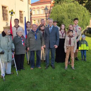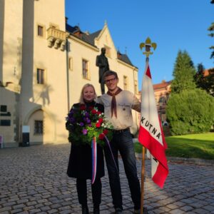 Po krátkých úvodních slovech položil starosta města i zástupci obou oddílů květiny k pomníku prvního československého prezidenta. Společně pak neplánovaně zazpívali českou státní hymnu, jejíž slova v 19. století sepsal Josef Kajetán Tyl – rodák z Kutné Hory. Ten si při psaní textu písně Kde domov můj vzpomněl na svůj domov v Kutné Hoře a nechal se inspirovat údolím kutnohorské říčky Vrchlice.