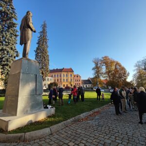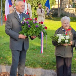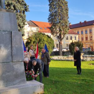 V 9:00 hodin ráno přivítal starosta města Josef Viktora návštěvníky pietního aktu a vzpomenul prvního československého prezidenta T. G. Masaryka. Připomněl také náladu obyvatelstva při vzniku samostatné Československé republiky. Místostaroska Silvie Doušová symbolicky popřála republice k narozeninám nejen dobrou politickou budoucnost, ale i to, aby republika v následujících letech vzkvétala.
