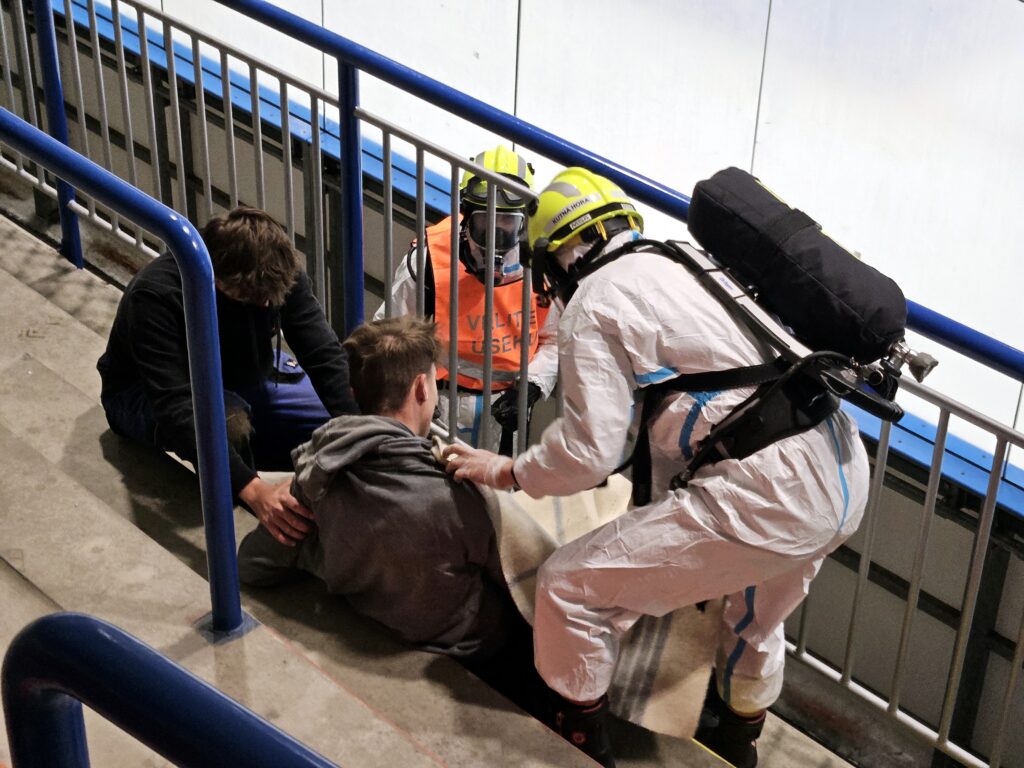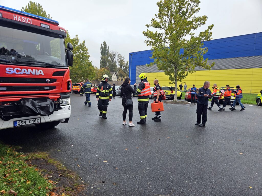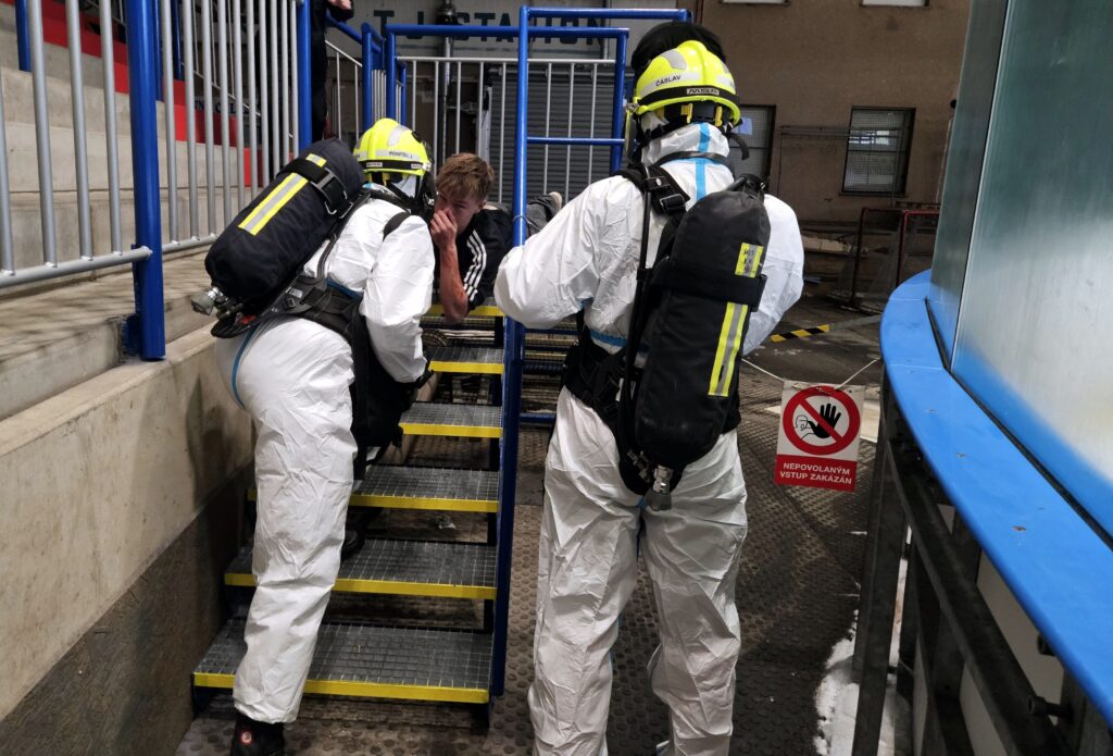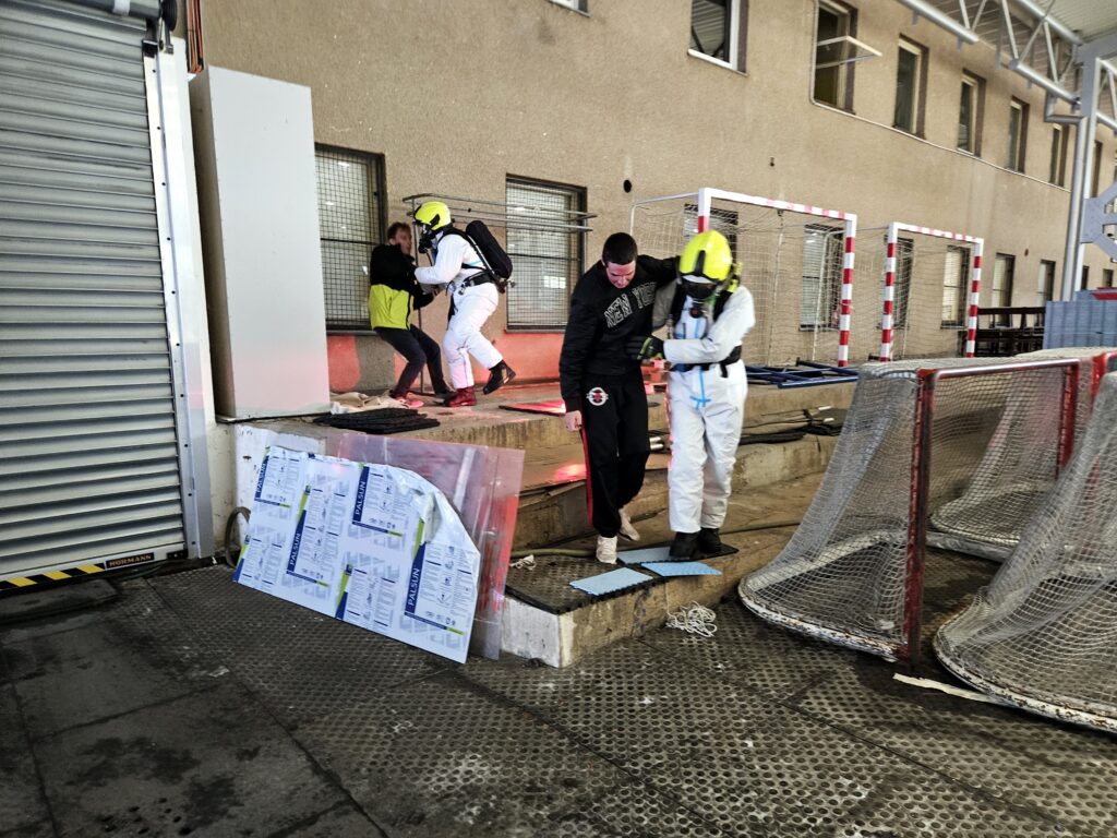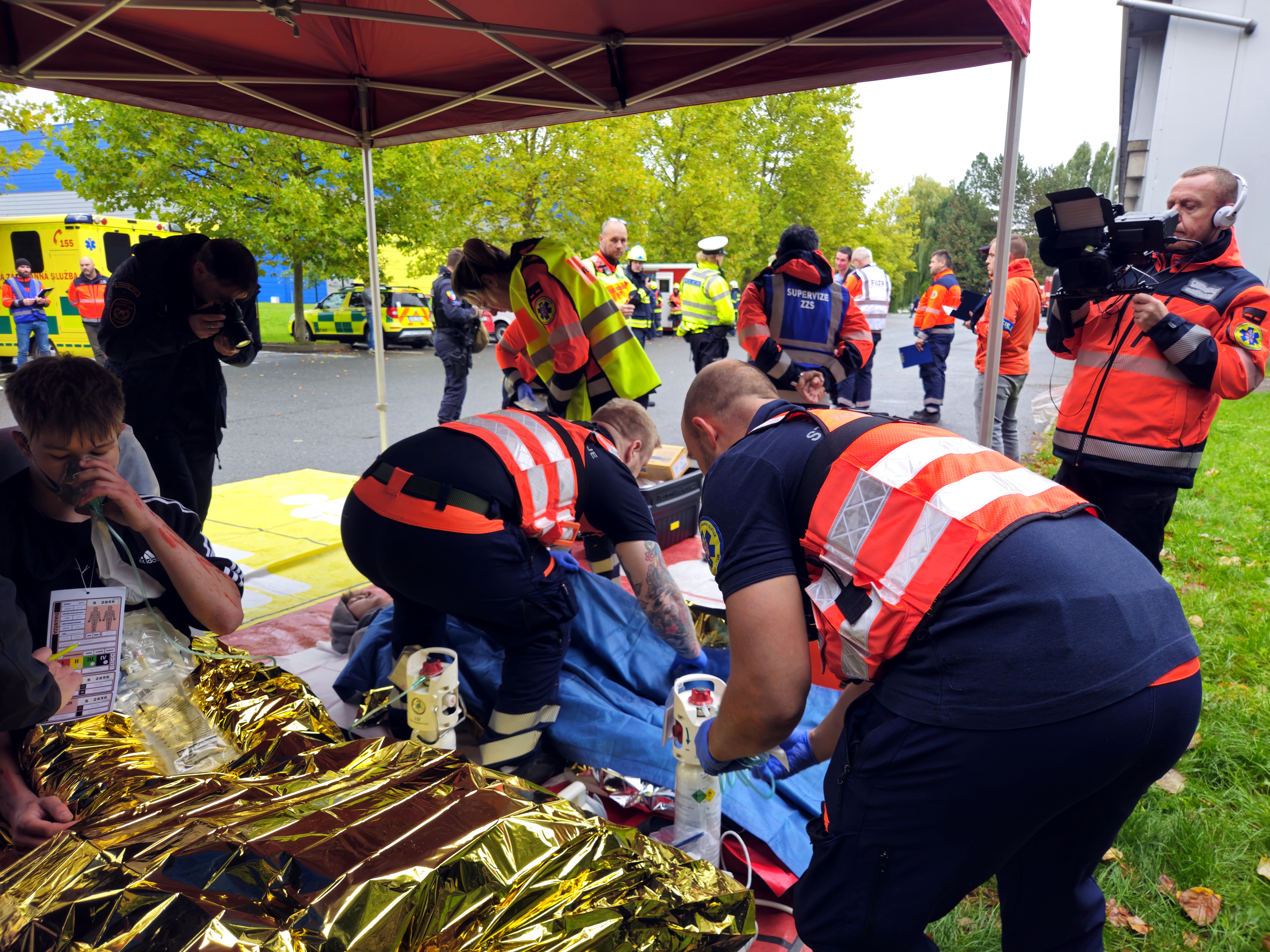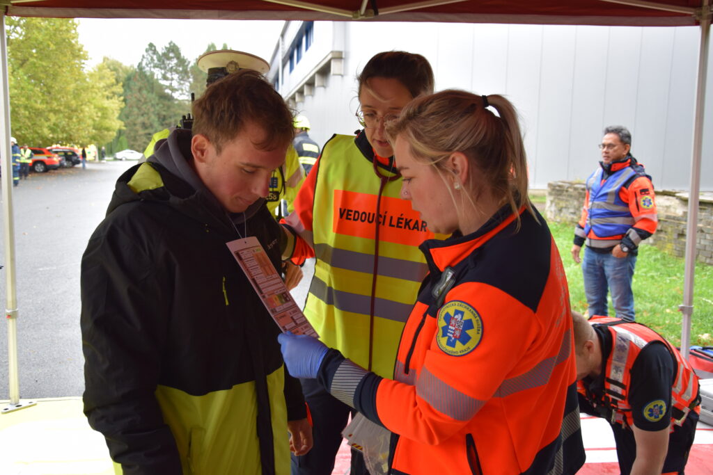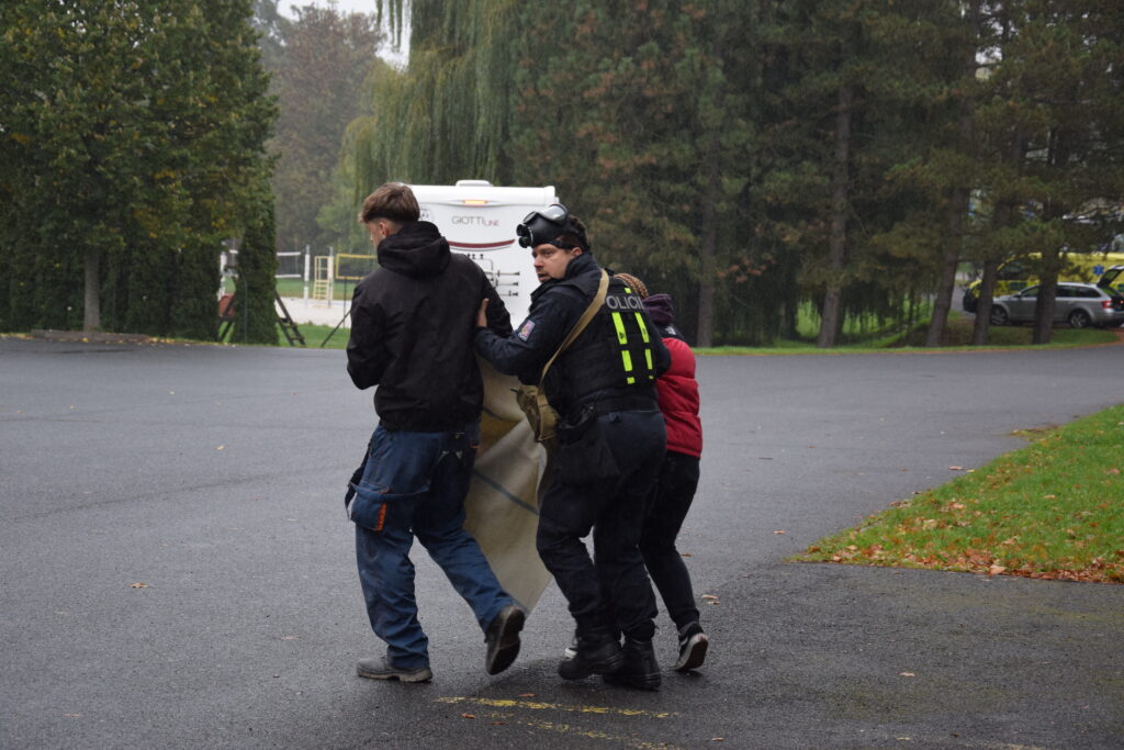 Po úspěšné evakuaci si figuranty převzala do péče zdravotnická záchranná služba, která zajišťovala první pomoc a další ošetření.
