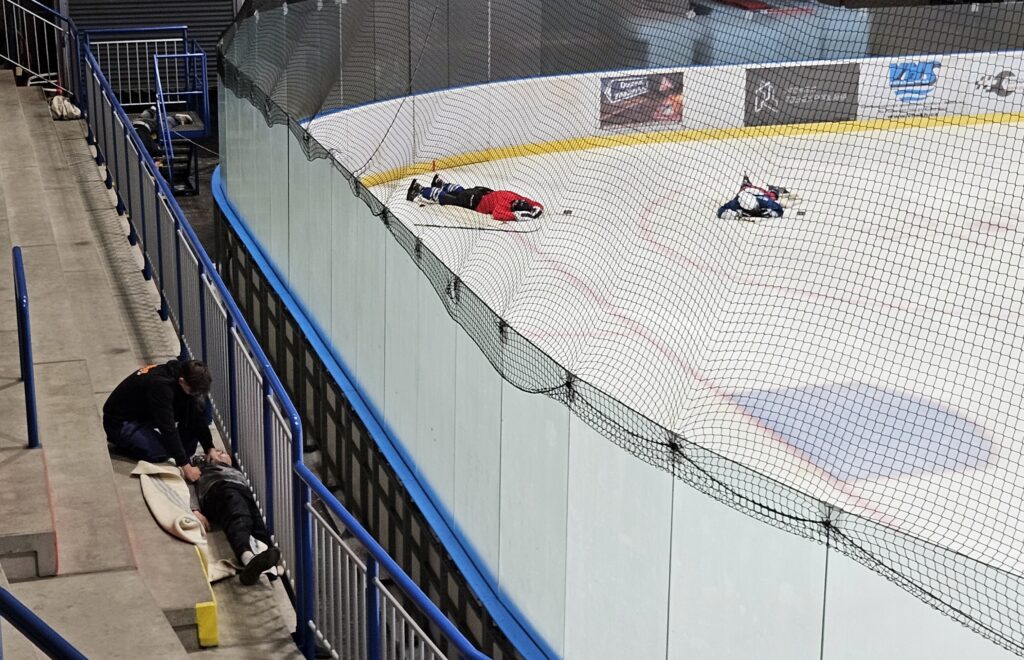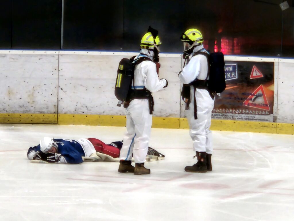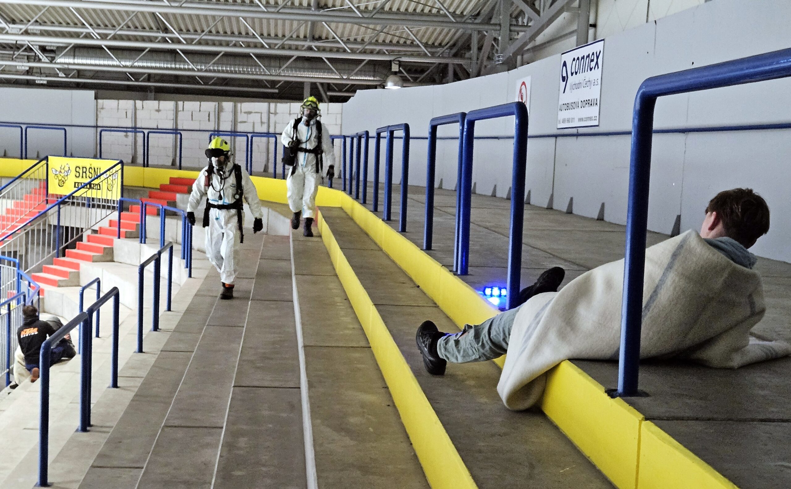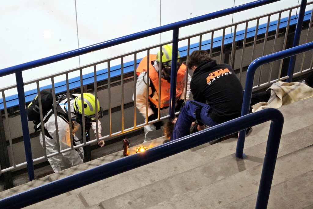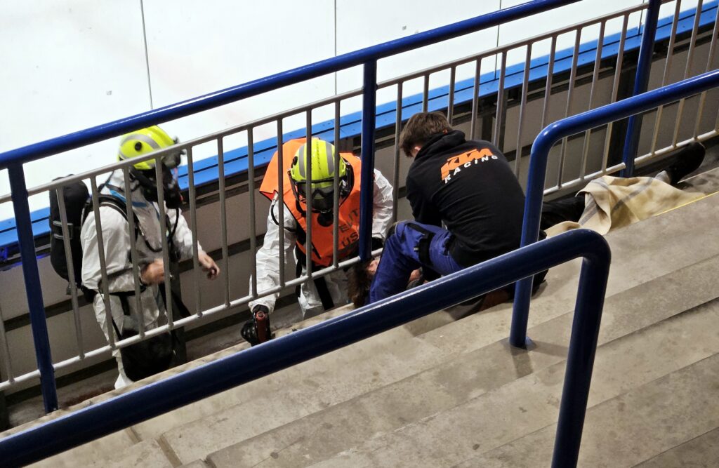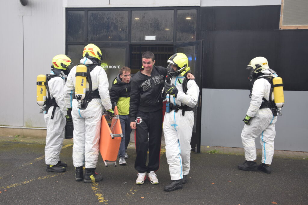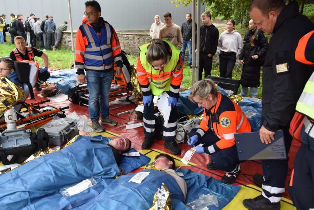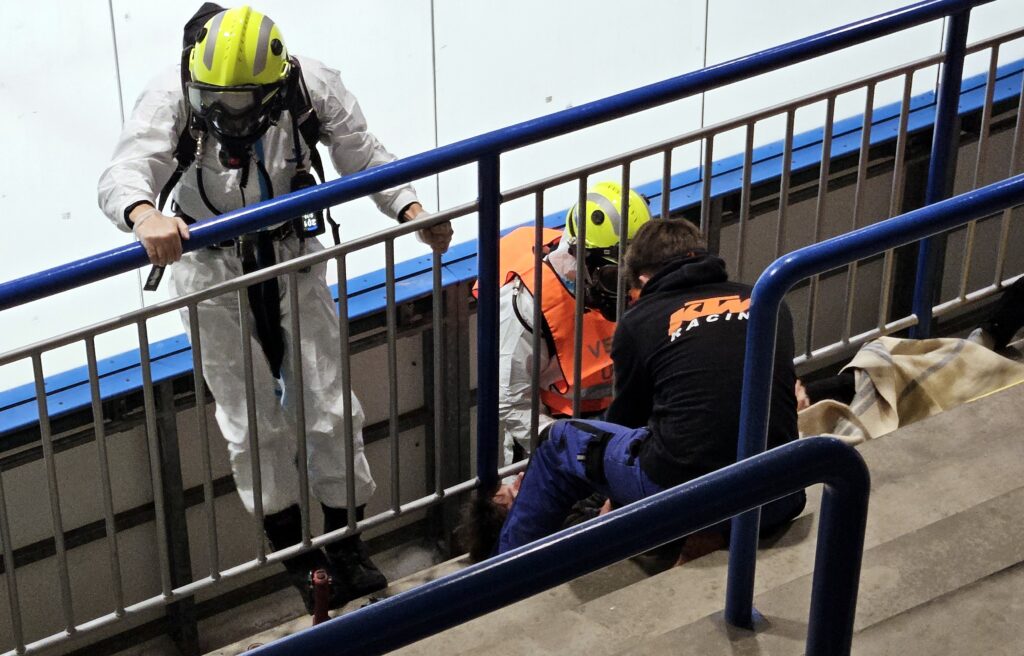 Po úspěšné evakuaci si figuranty převzala do péče zdravotnická záchranná služba, která zajišťovala první pomoc a další ošetření.
