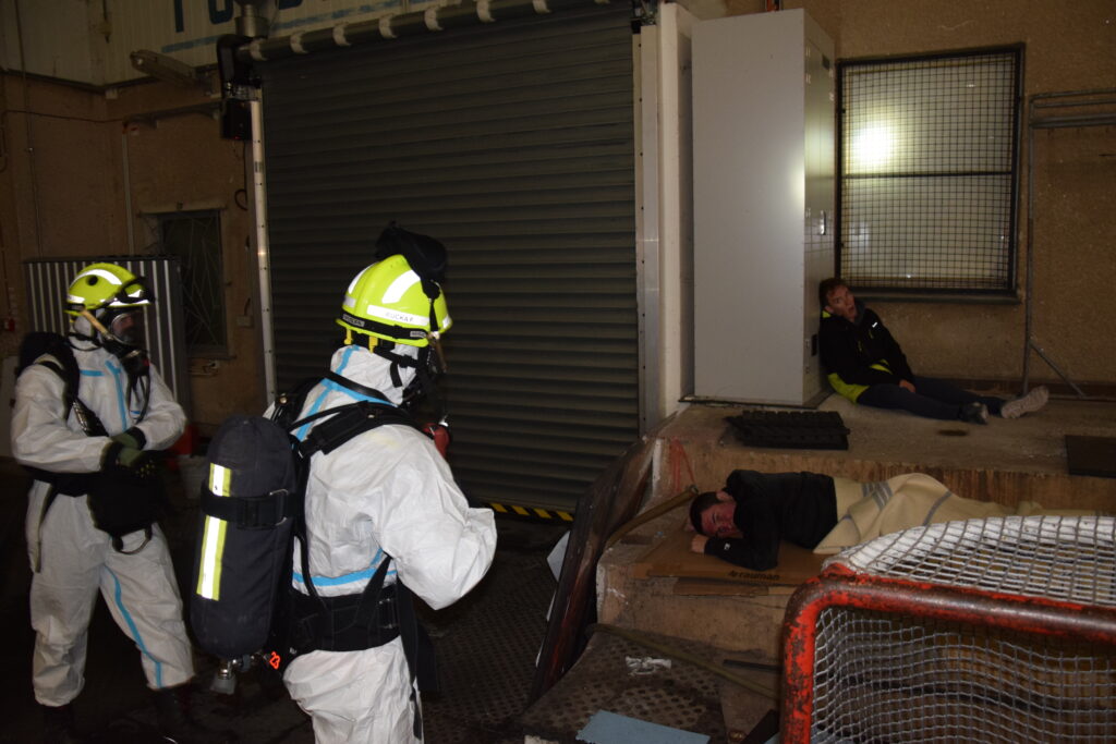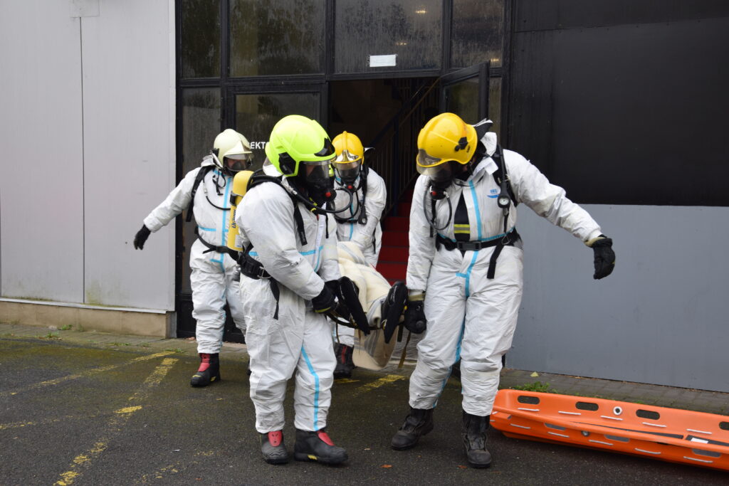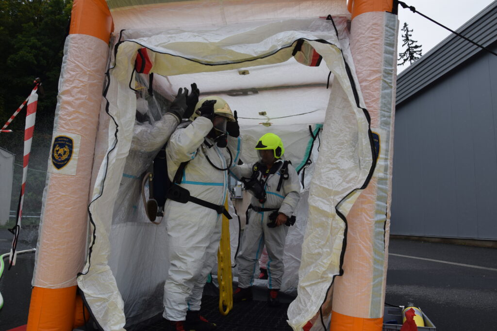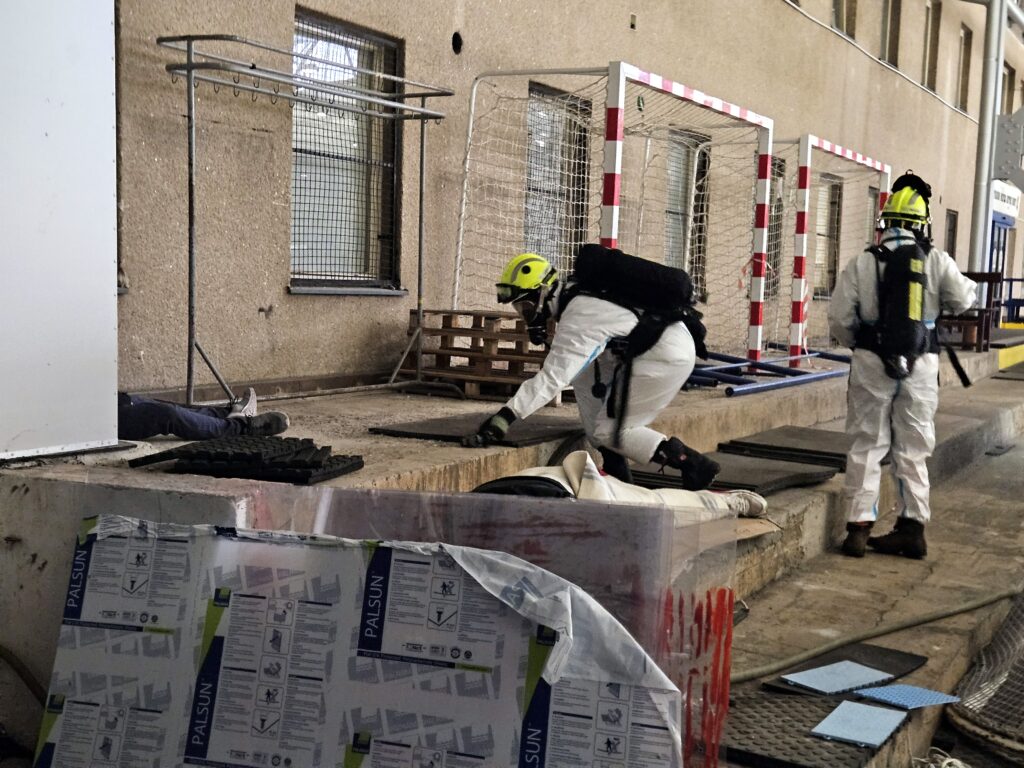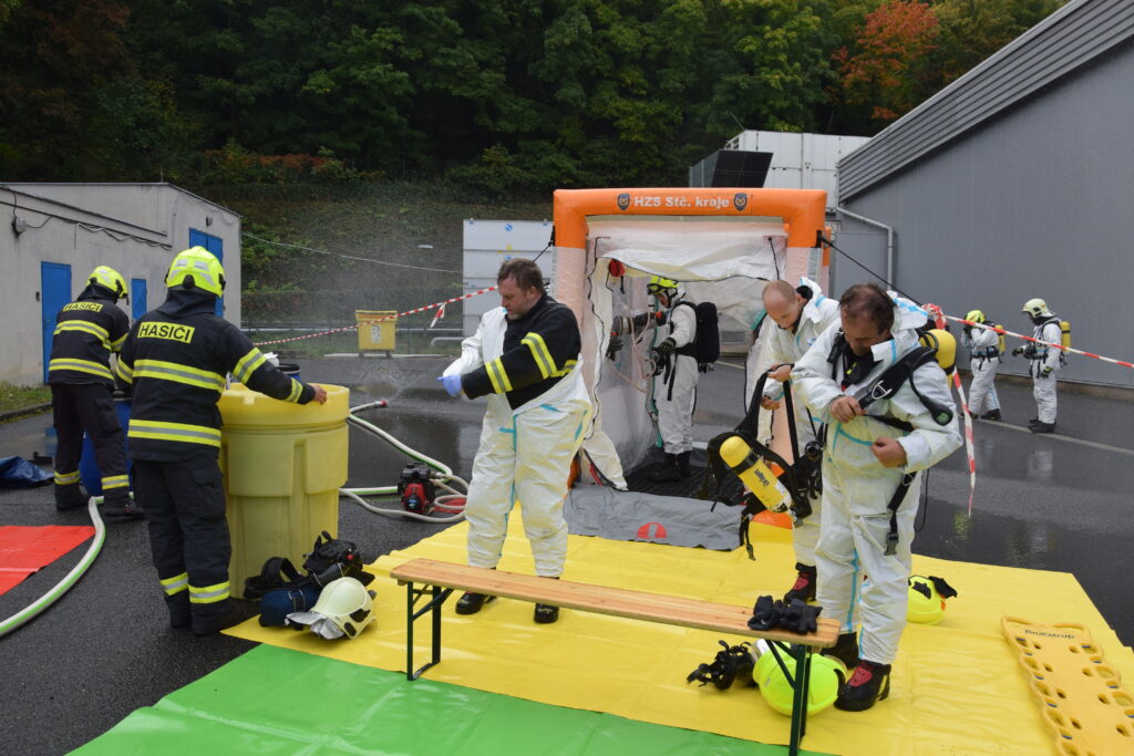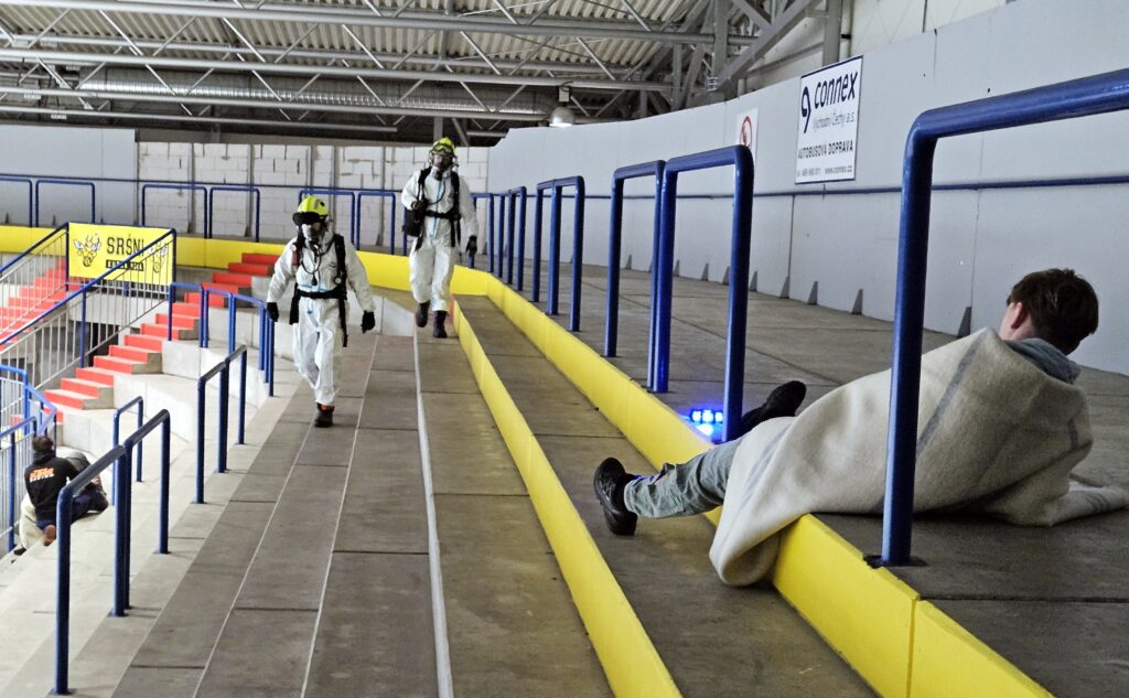 Krátce po ohlášení události na místo dorazila Policie ČR, zněly sirény hasičských vozů, záchranáři začali připravovat zázemí pro ošetřování raněných. Každá z jednotek hasičů měla přesně stanovený úkol. Hasiči při zásahu používali ochranné pomůcky a speciální technické prostředky určené pro pohyb v kontaminovaném prostředí. Průzkumná skupina nejprve prověřila prostory a jednotlivé „zraněné“ figuranty označila pomocí identifikačních světelných kódů podle závažnosti jejich zdravotního stavu. Tímto způsobem poskytla informace další skupině hasičů, která byla vybavena pro delší pobyt v zamořeném prostředí a provedla evakuaci osob podle prioritizace stavu.